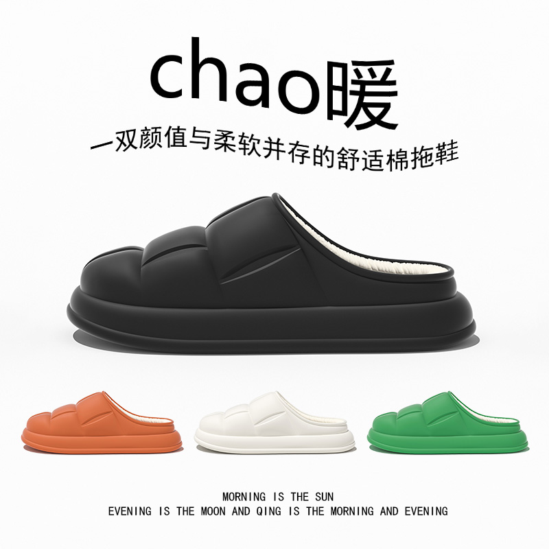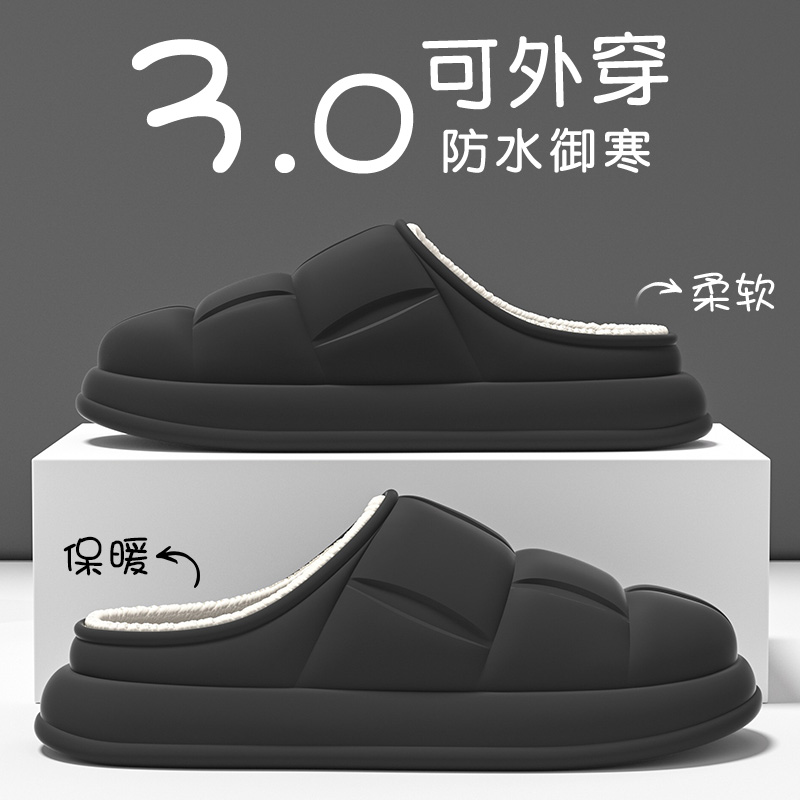 防水棉拖鞋男士冬季2024新款室内居家厚底防滑加绒保暖外穿棉鞋女,浙江 金华