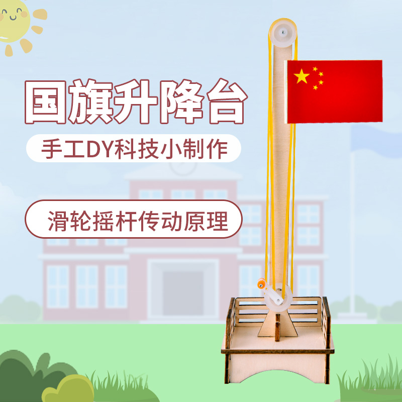 国庆节爱国红色主题手工作品diy材料小学生幼儿园升国旗升降台