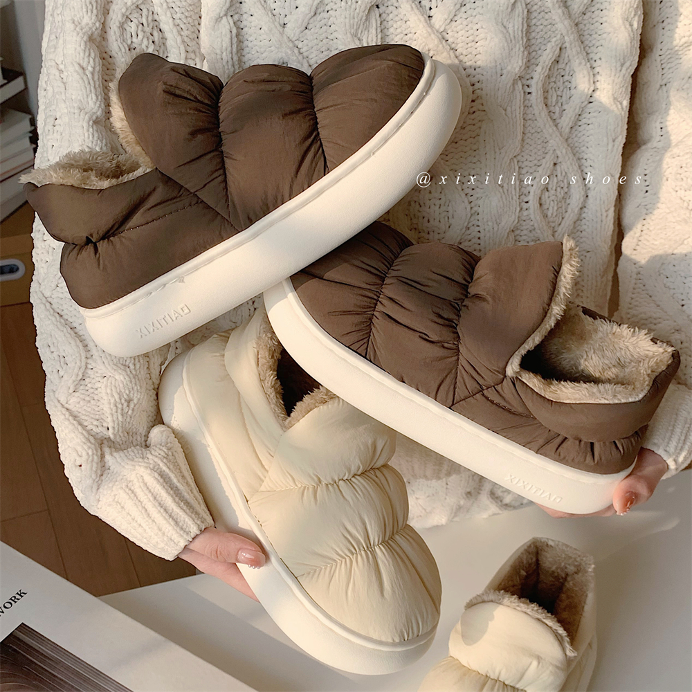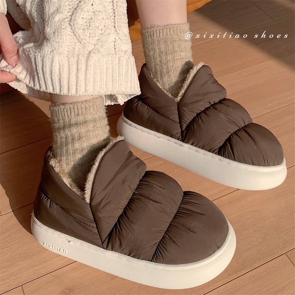 细细条 可外穿休闲棉鞋男女冬季防滑厚底保暖居家月子毛绒棉拖鞋