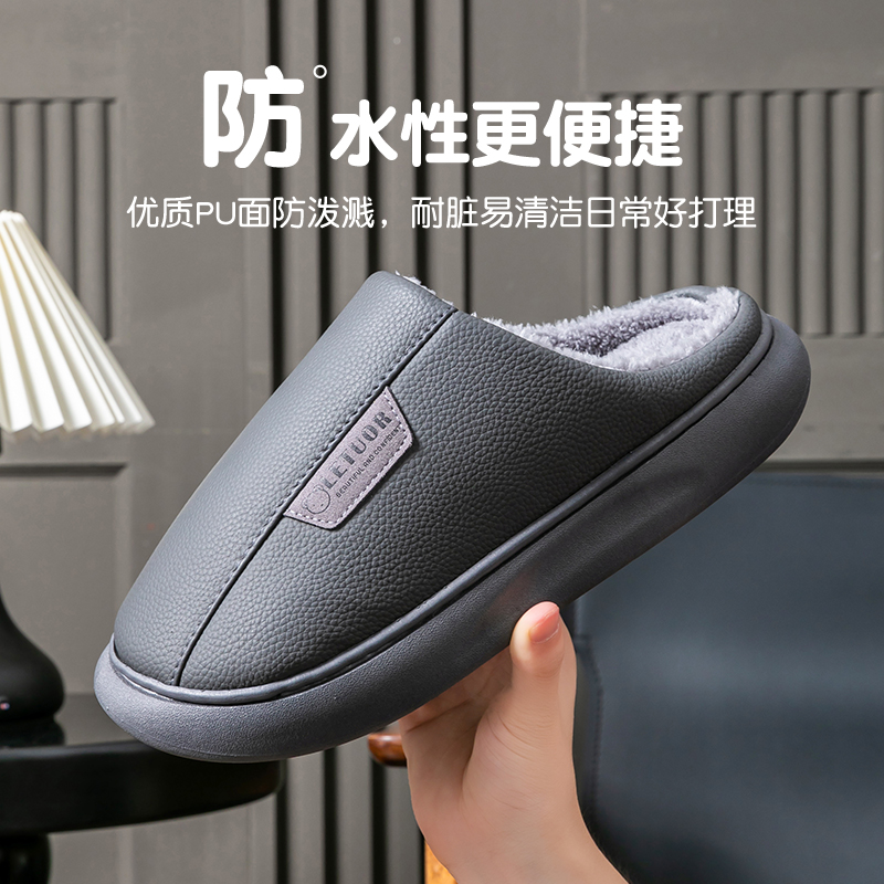居家棉拖鞋女秋冬季室内厚底家用防滑PU防水毛绒保暖棉鞋男士冬天,浙江 台州