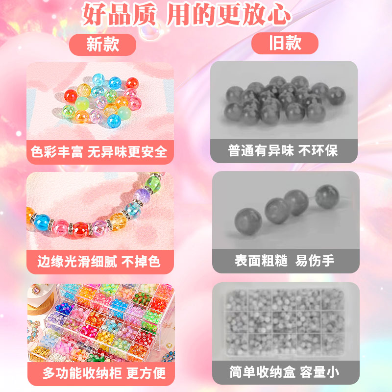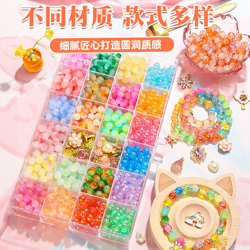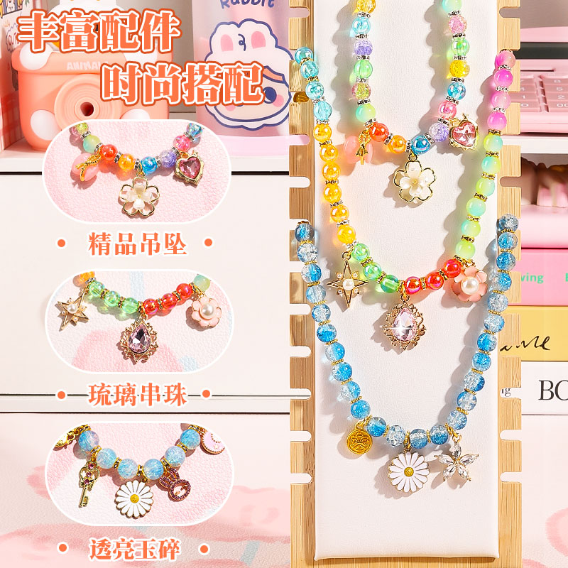 儿童串珠手工diy材料手链项链女孩玩具穿珠子礼盒女童琉璃手串4的