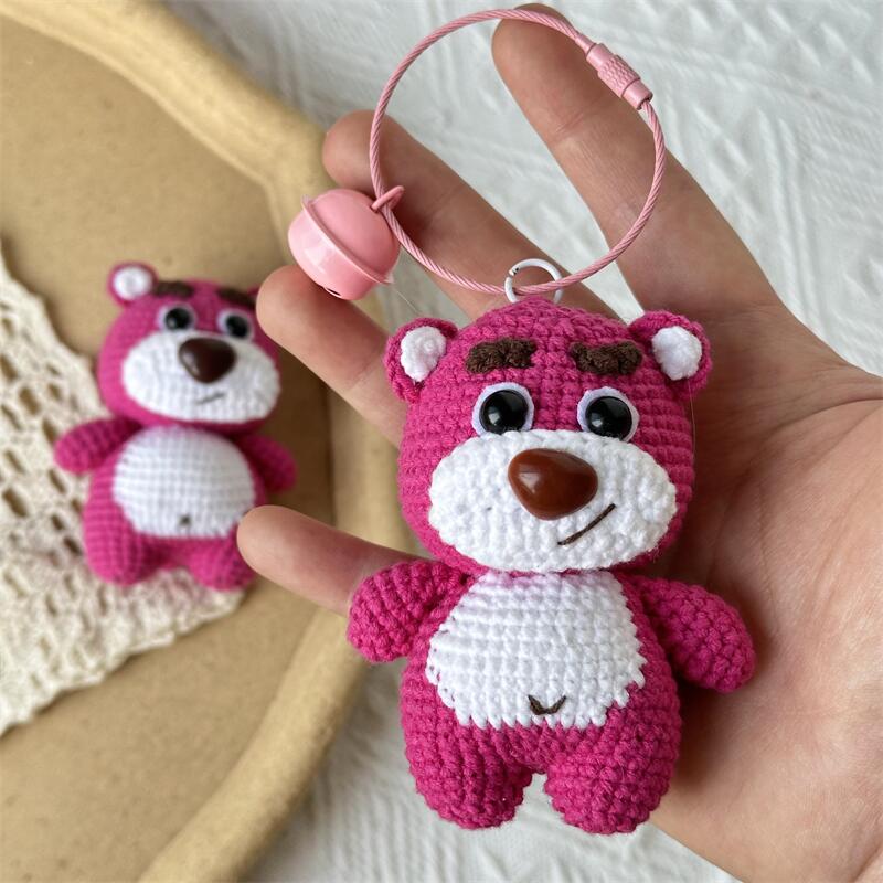 DIY手工草莓熊玩偶钩织毛线编织材料包钥匙扣挂件送朋友自制礼物