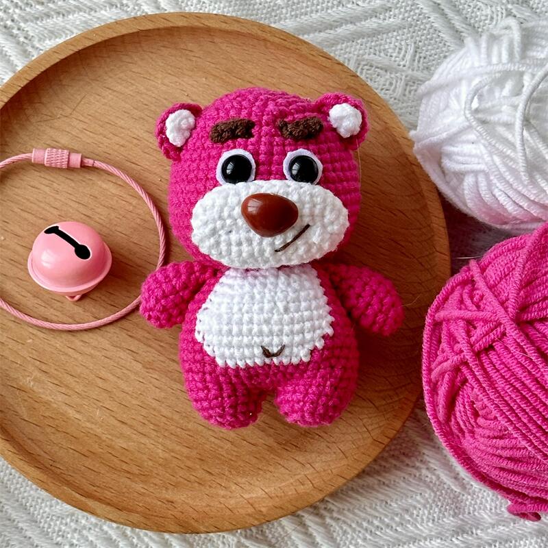 DIY手工草莓熊玩偶钩织毛线编织材料包钥匙扣挂件送朋友自制礼物,安徽 亳州