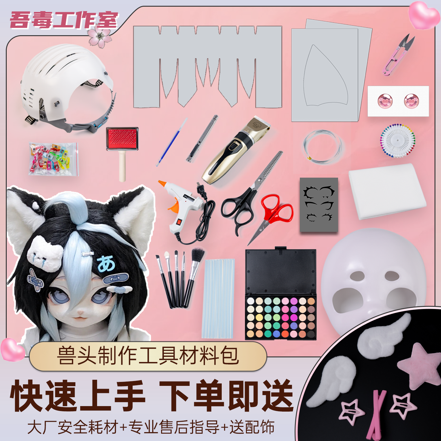 福瑞kig兽头骨头套头发兽装制作diy材料全套cos服成品儿童小学生