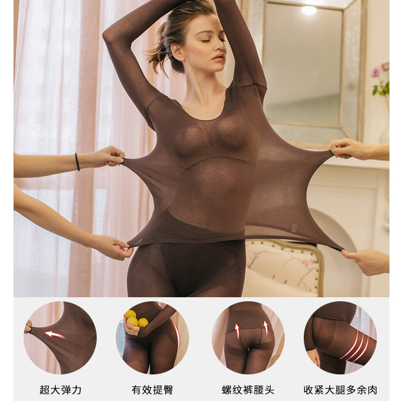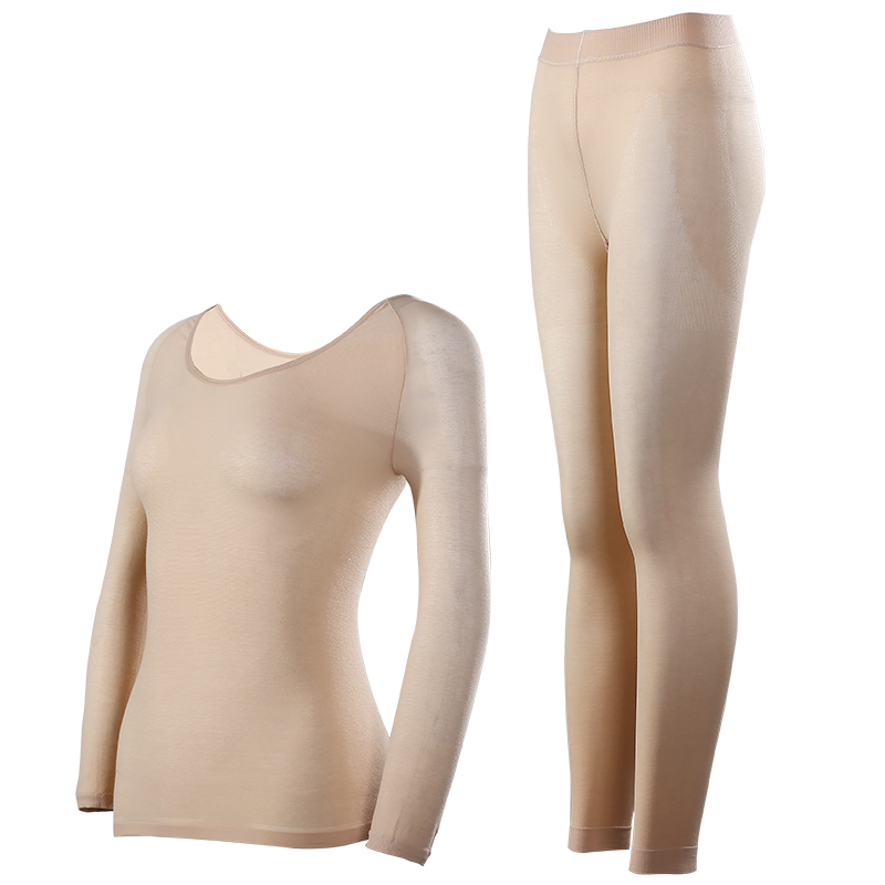 37度黑科技恒温发热纱女高弹超薄皮肤衣圆领保暖打底秋衣秋裤套装,广东 深圳