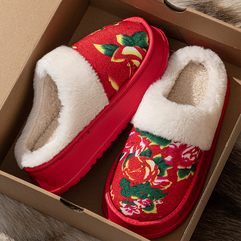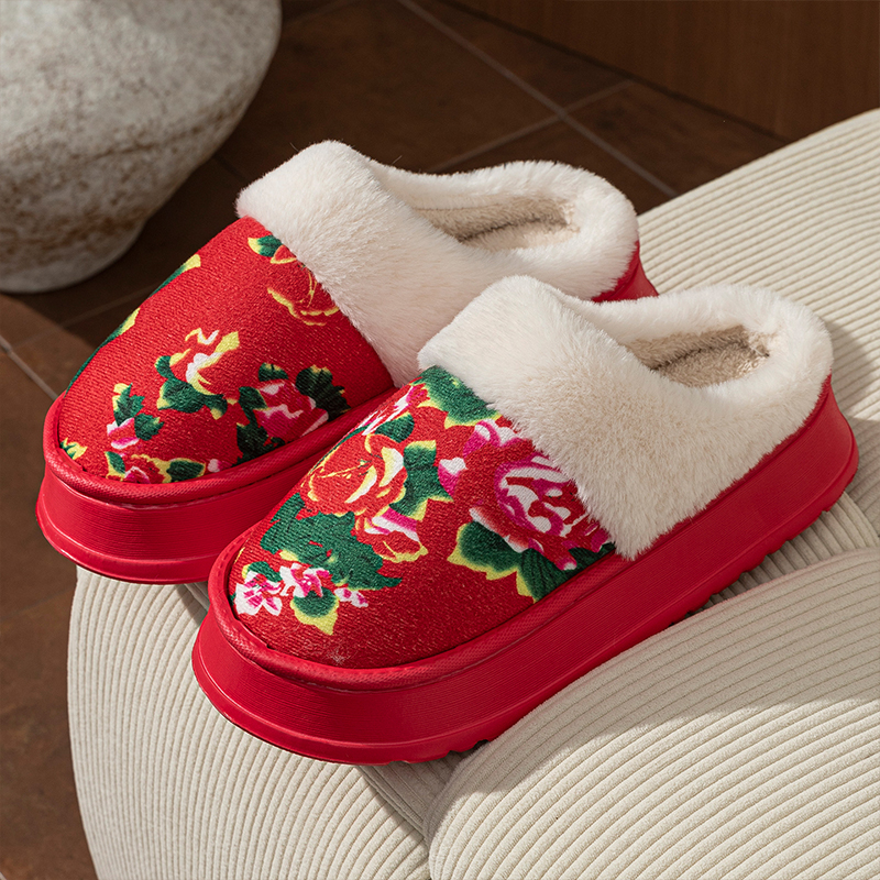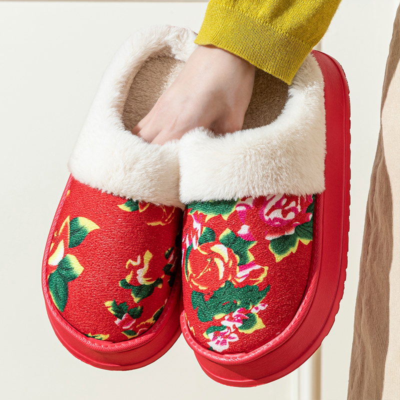 东北大花棉拖鞋女款秋冬季2025新款厚底防滑加绒保暖居家毛绒棉鞋,浙江 金华