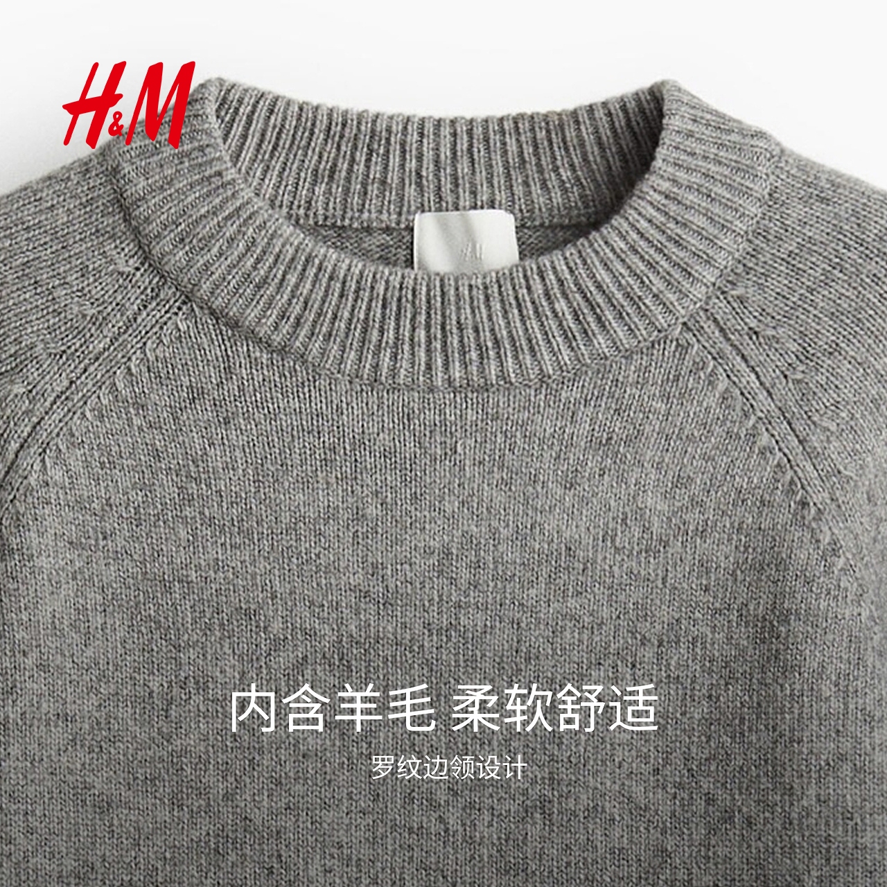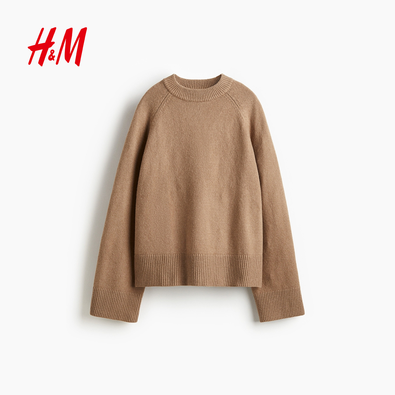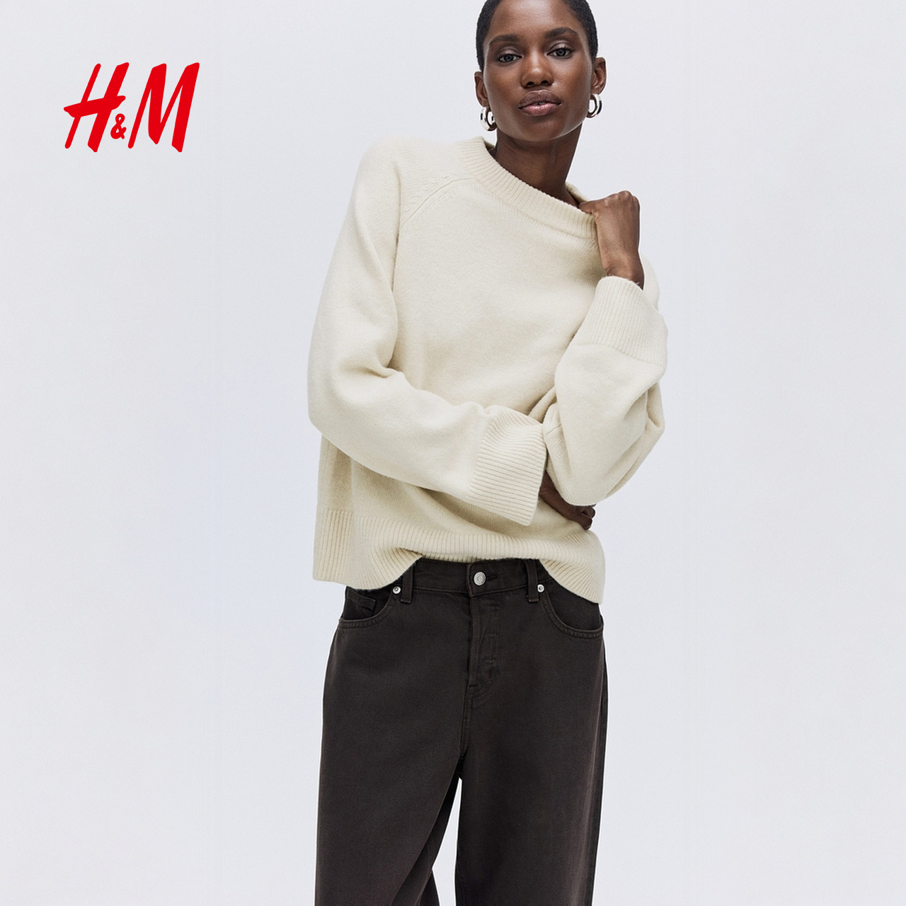 HM女装毛针织衫2025秋季新款宽松柔软圆领保暖休闲套衫1295267,江苏 苏州