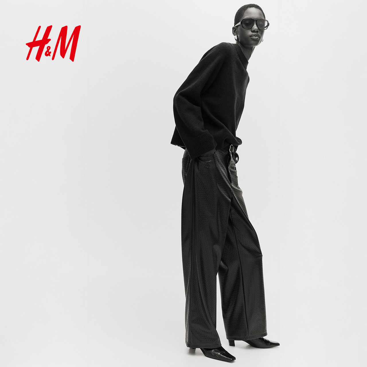 HM女装毛针织衫2025秋季新款宽松柔软圆领保暖休闲套衫1295267