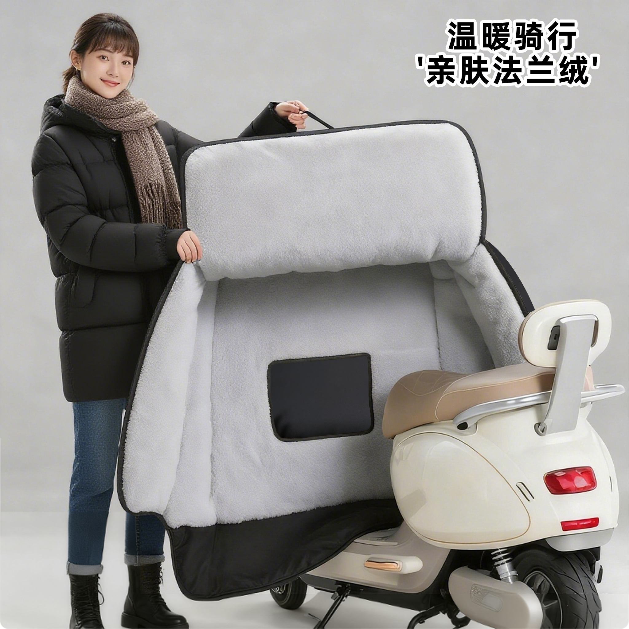 【收纳扣】电动车防寒挡风被加绒加厚加宽型一体防风被新款冬通用