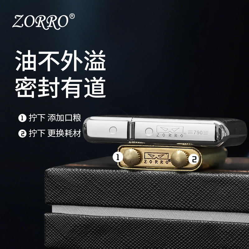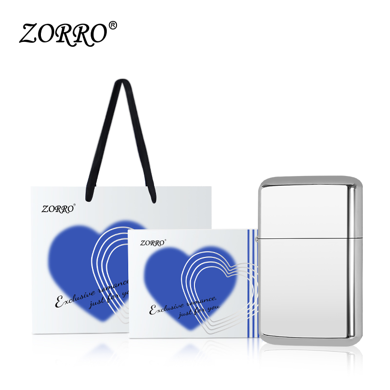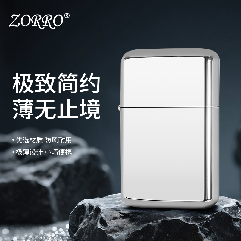 ZORRO佐罗官方正品煤油打火机防风白镍光板生日送男朋友老公礼物