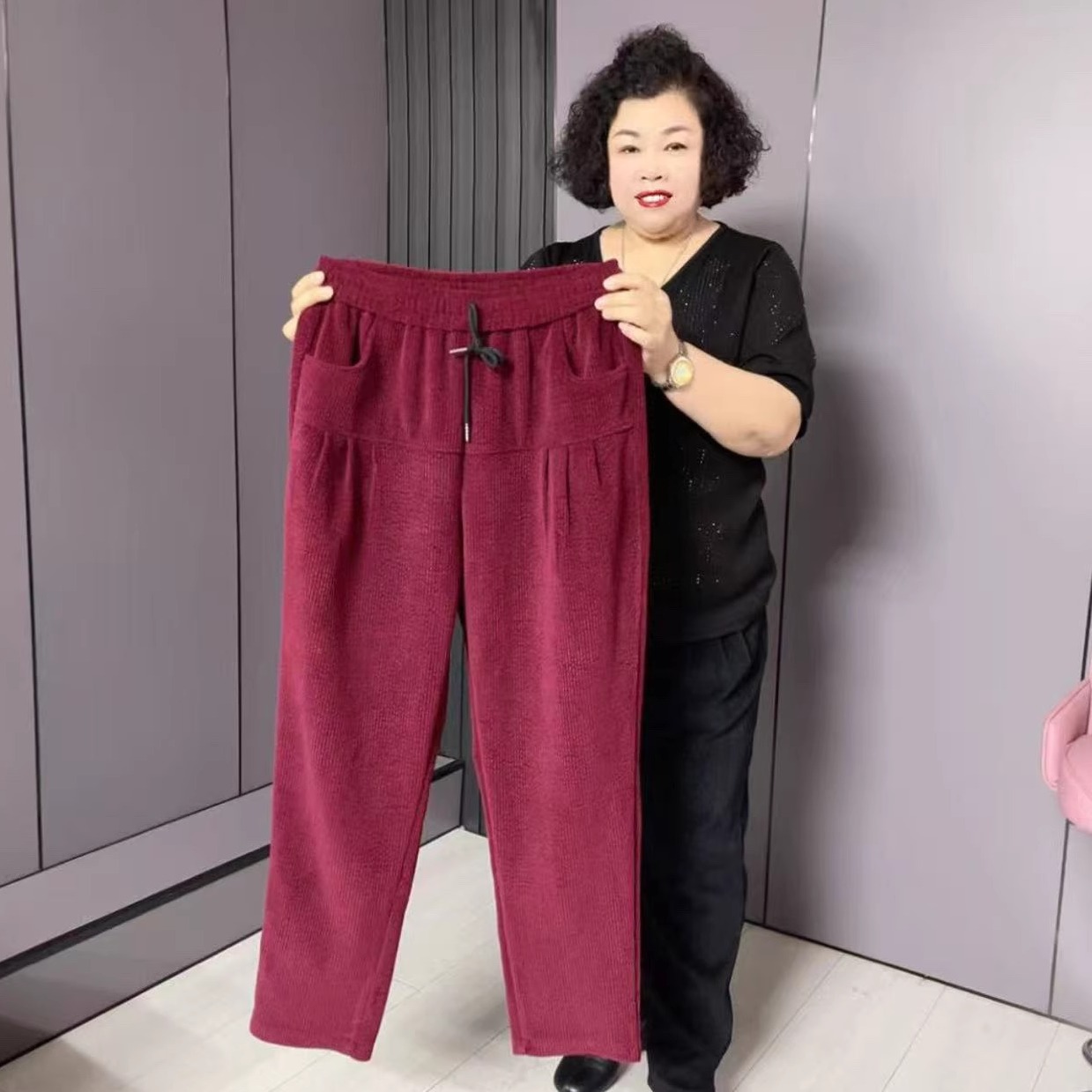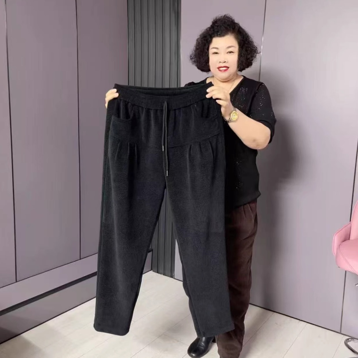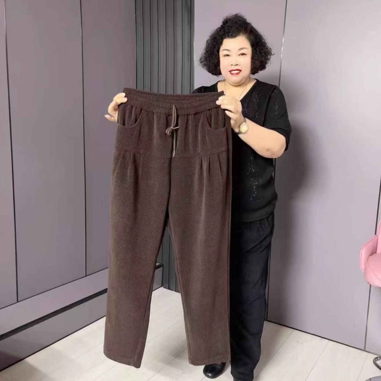 2025秋冬新款韩版时尚松紧腰加肥加大码遮肉显瘦加厚奥尼尔哈伦裤,辽宁 鞍山