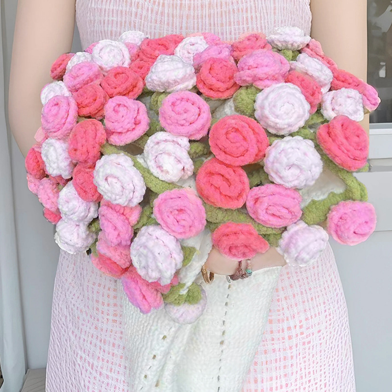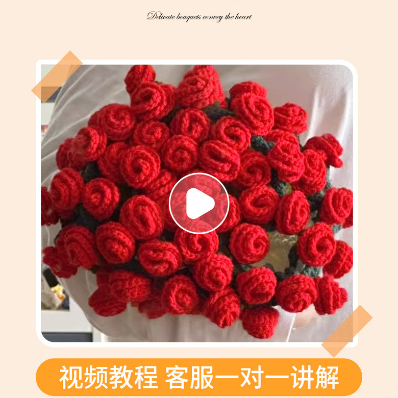 玫瑰花束手工编织diy材料包花束材料包毛线团自制礼物送女友闺蜜