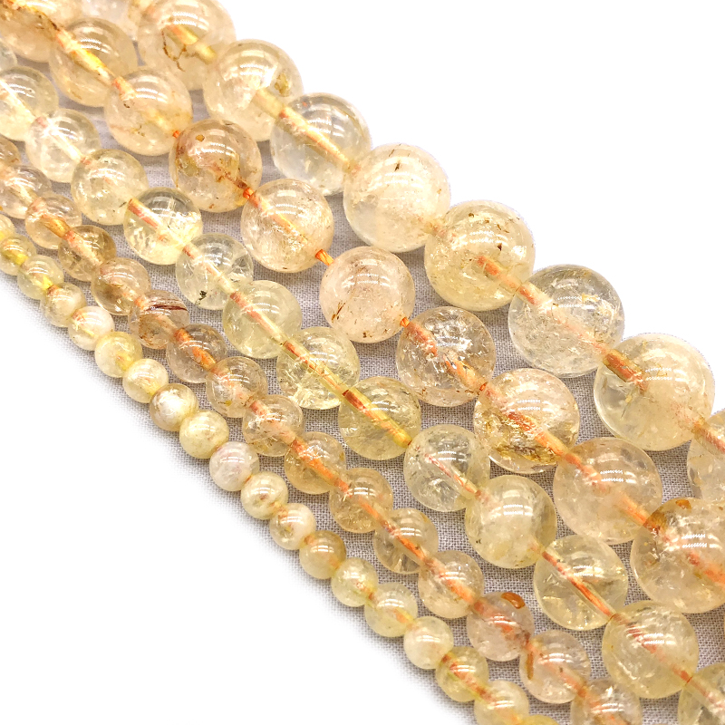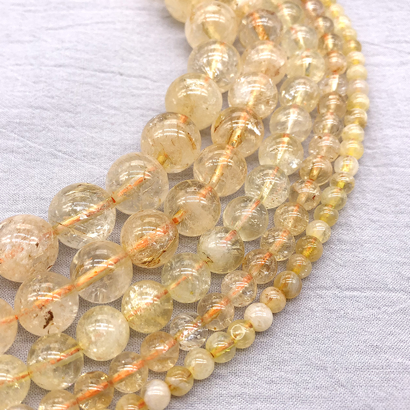 天然黄水晶棉絮散珠子玉髓diy手工穿圆珠耳环吊坠配件饰品手链女