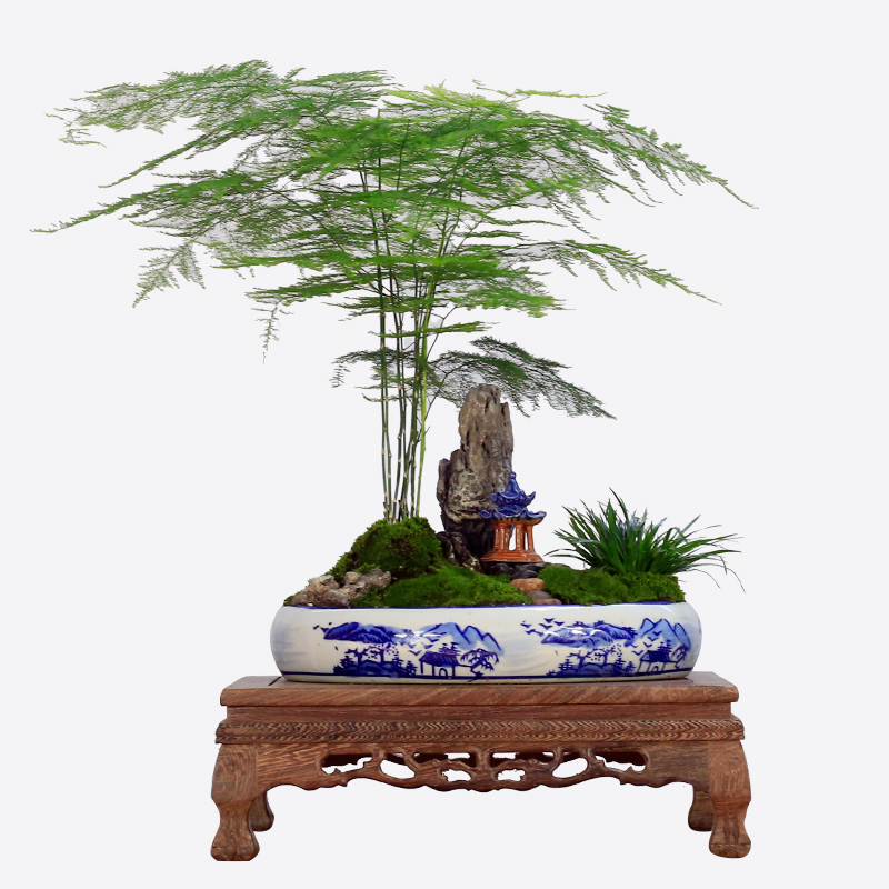 大文竹盆栽假山造型盆景植物室内客厅办公桌花卉绿植四季常青苗