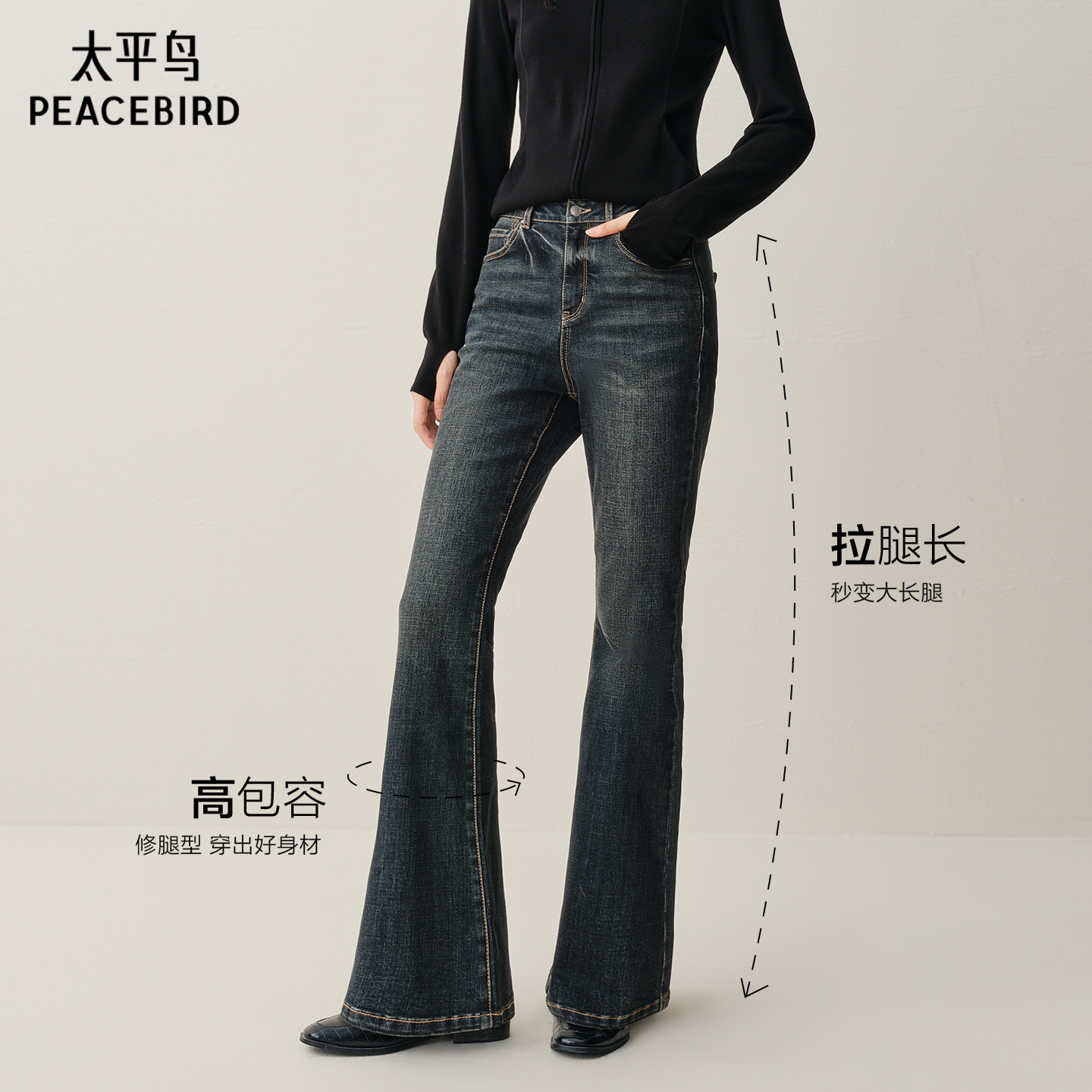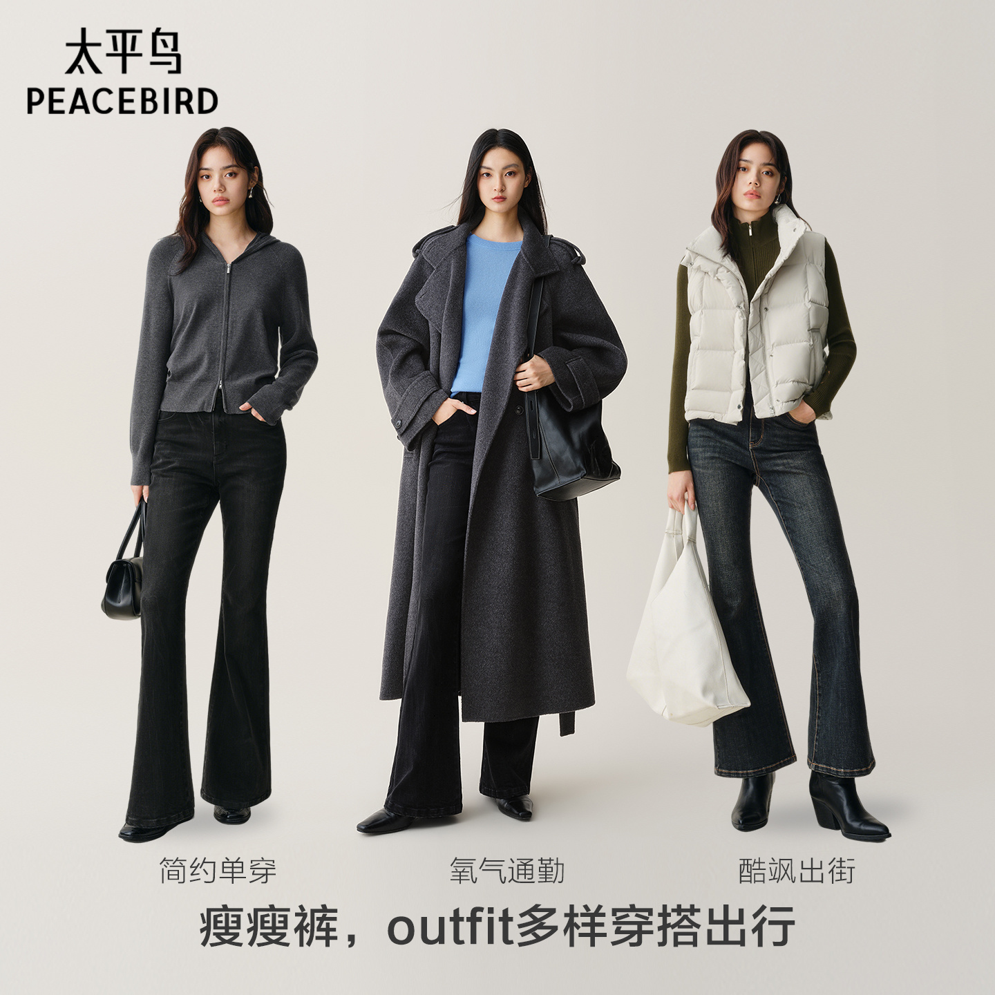 商场同款瘦瘦裤 太平鸟25冬新款发热高腰微喇马蹄牛仔裤A1HAF4296,浙江 宁波