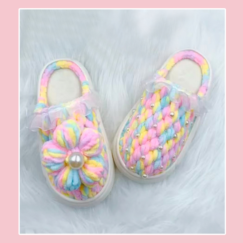 手工钩织秋冬泡芙棉拖加绒锦汇底冰条线钩居家亲子鞋礼物材料包,江苏 连云港