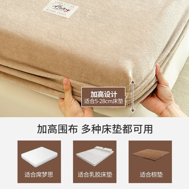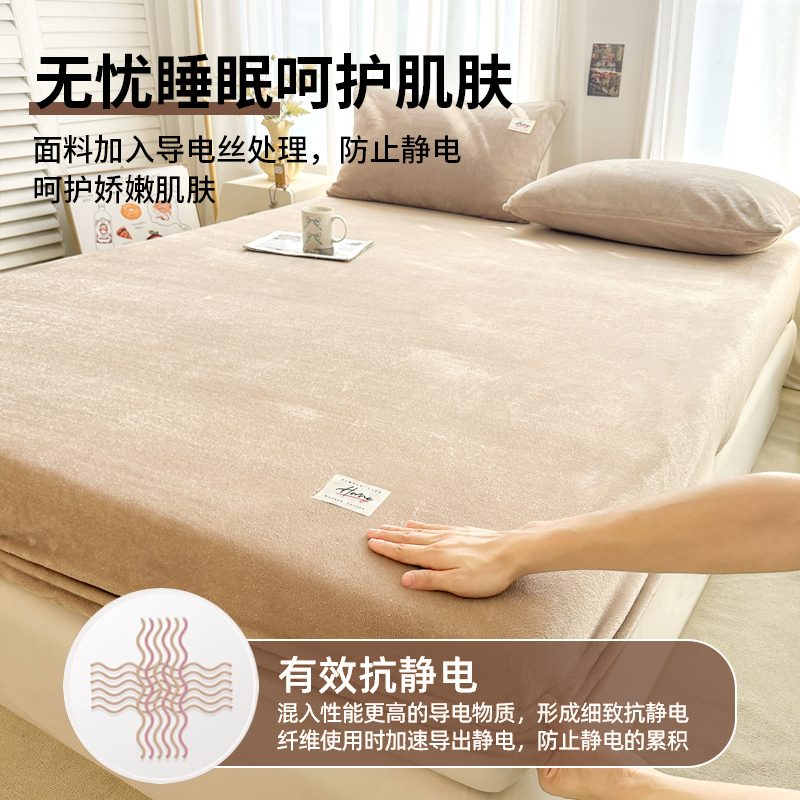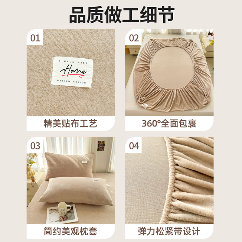 加绒牛奶绒床笠单件秋冬加厚珊瑚绒床单三件套毛绒床垫保护罩单人,江苏 南通