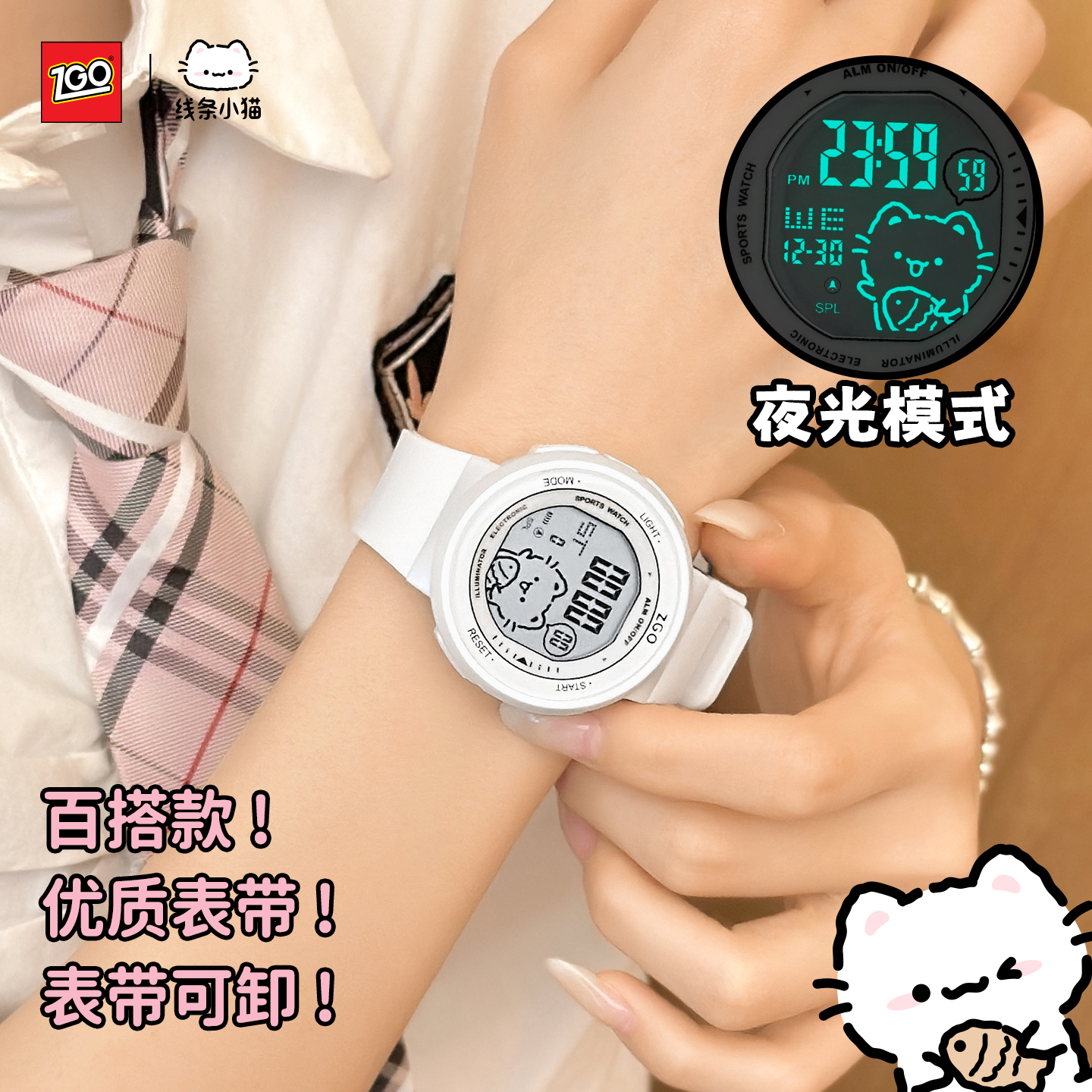 正港ZGO 线条小猫手表女款初高中学生儿童只看时间运动防水电子表,广东 广州