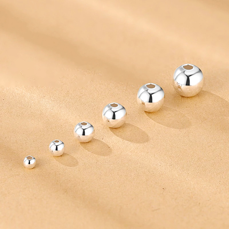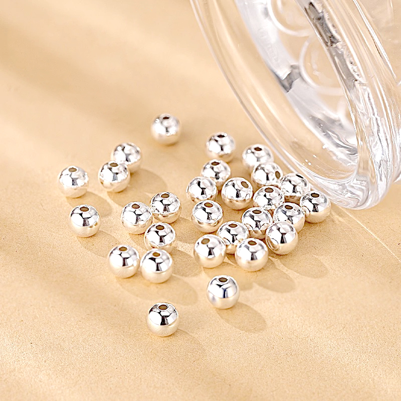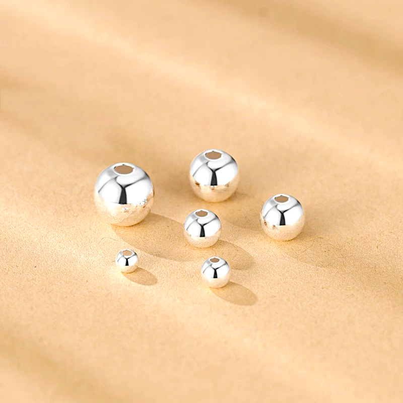 999足银按克珠子散珠光珠纯银圆珠编绳配件亮面小银珠串珠DIY材料