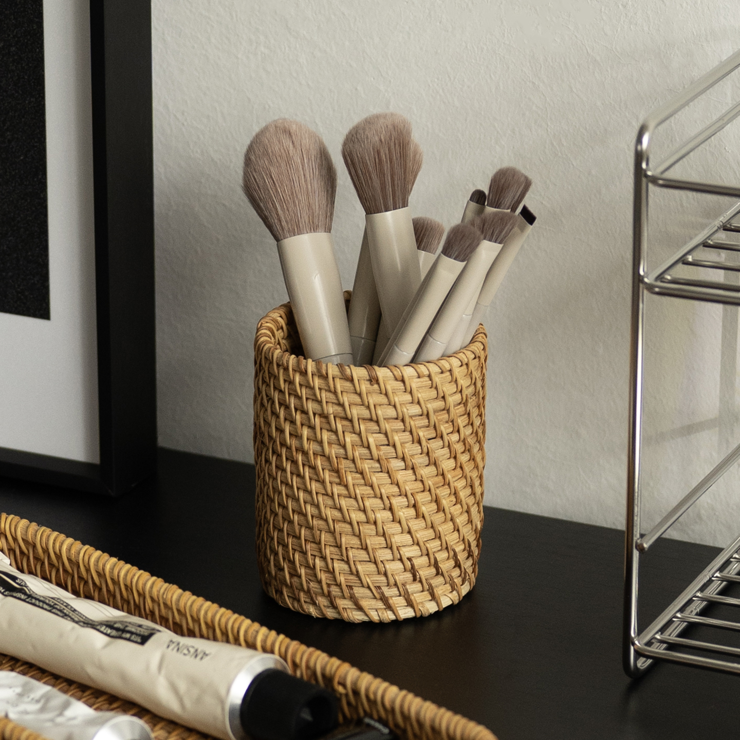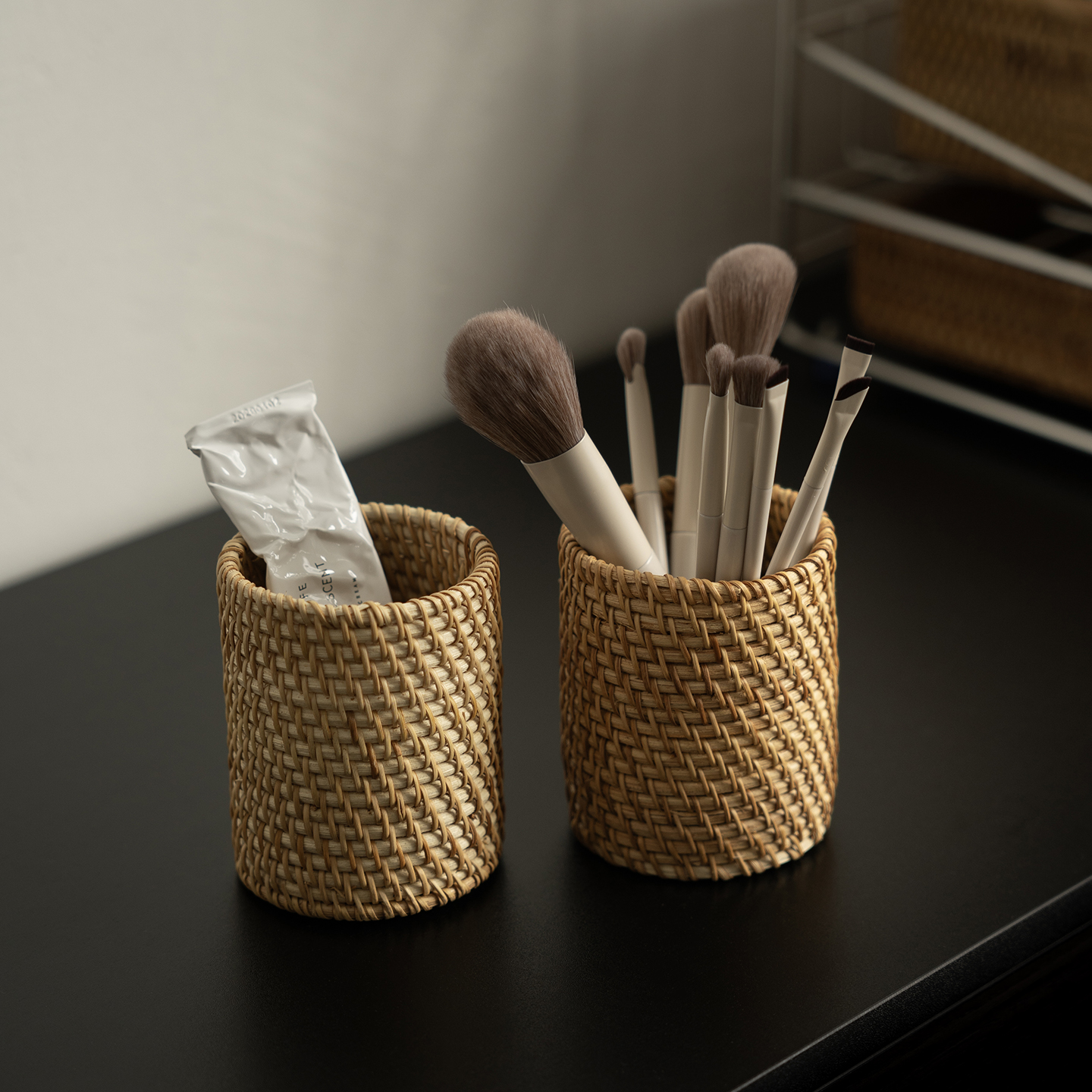 shy pear羞梨 笔筒 天然藤编化妆刷收纳盒梳妆台收纳筐桌面收纳筒,广东 潮州