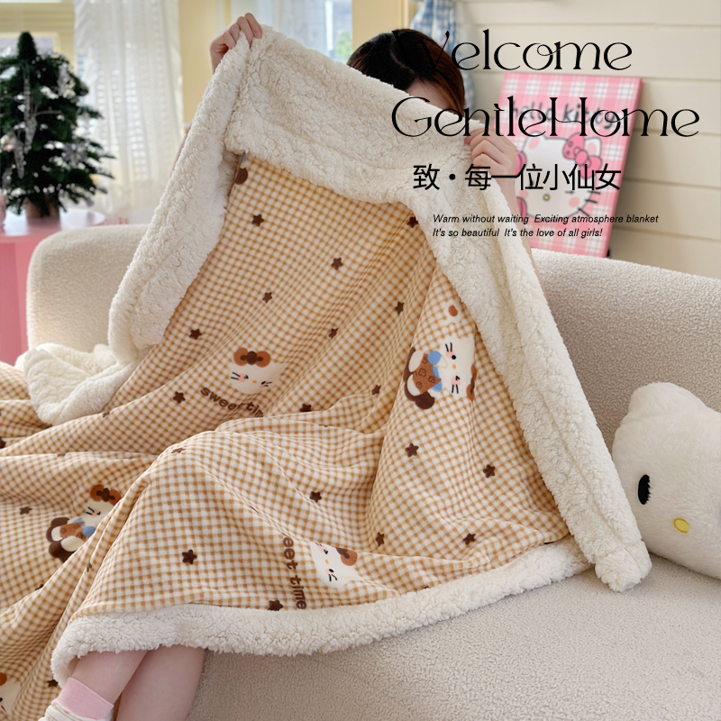 可爱风加厚牛奶绒羊羔绒床单沙发毯子午睡小毯子床上盖毯双面毛毯