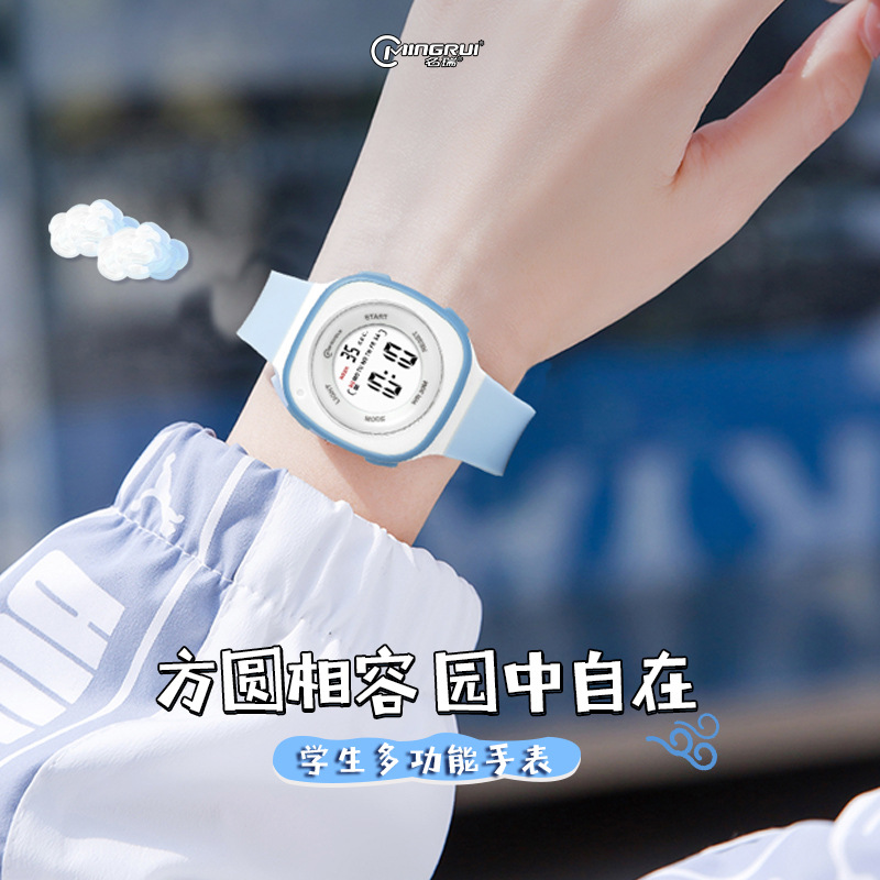 方形电子手表女款初高中学生简约高颜值只看时间儿童女孩女生防水,广东 广州
