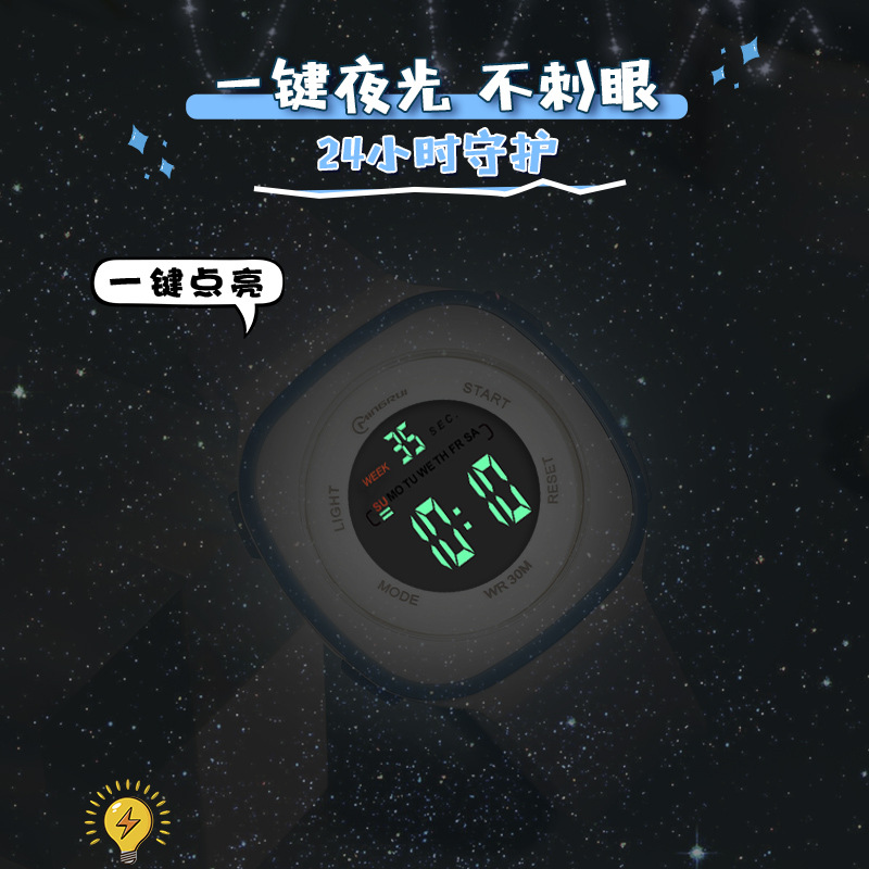 方形电子手表女款初高中学生简约高颜值只看时间儿童女孩女生防水