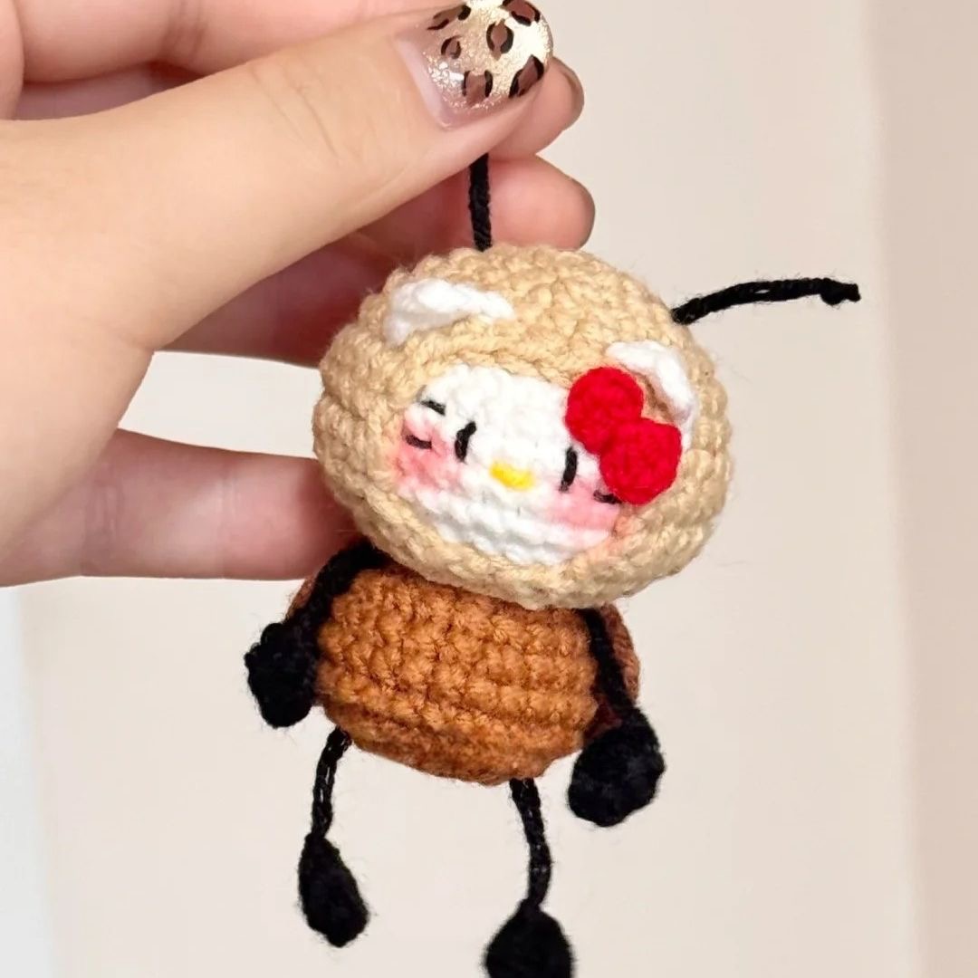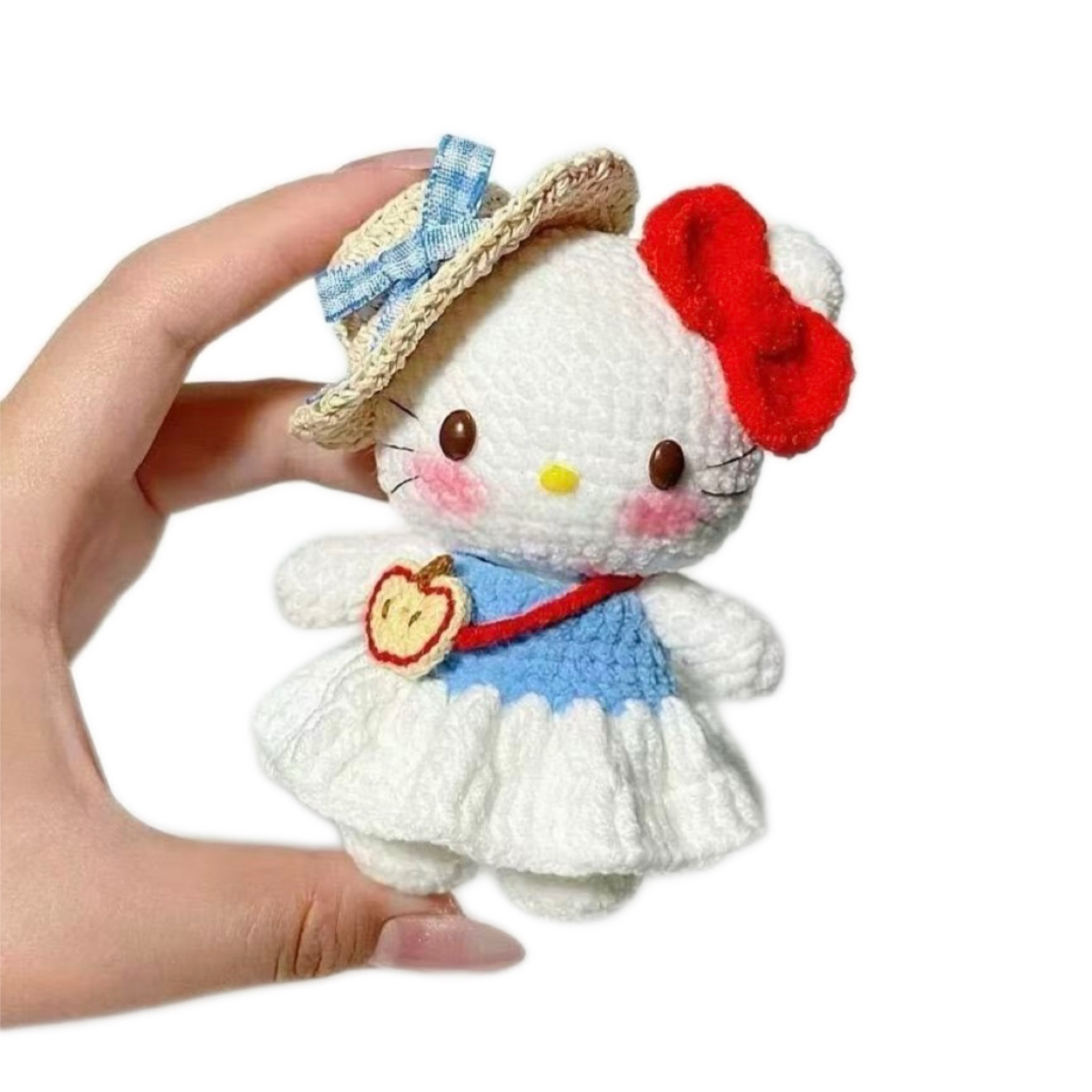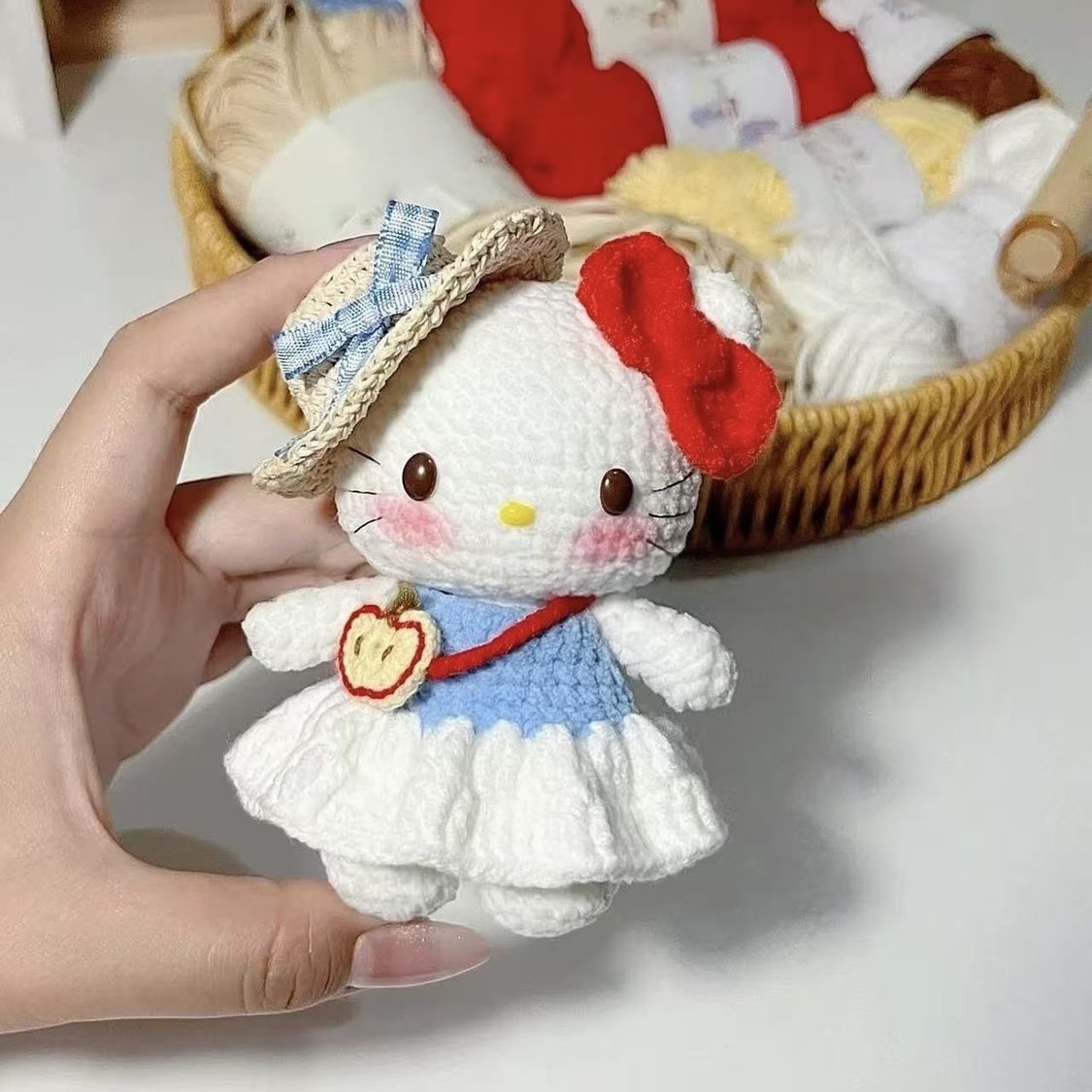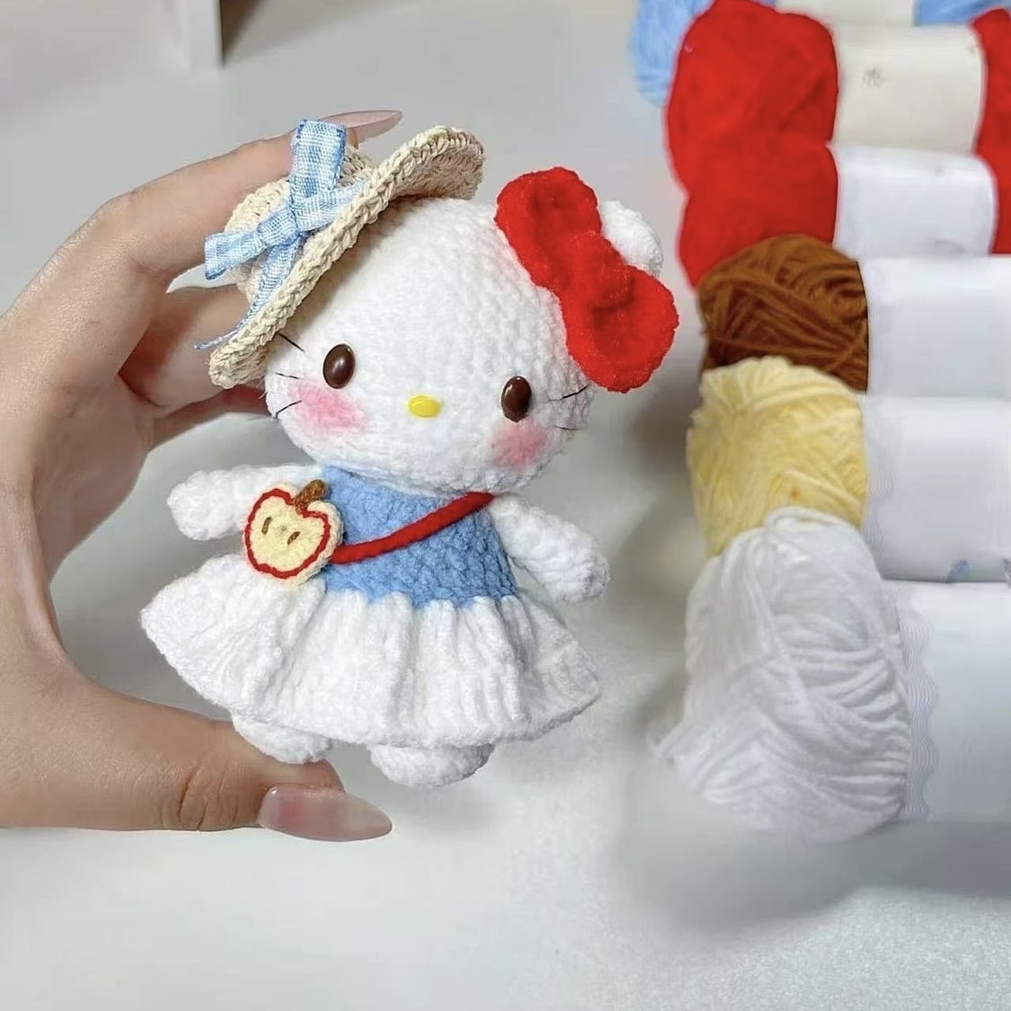 新手手工毛线钩针钩织可爱草帽Kitty玩偶diy材料包自制钥匙扣包挂,浙江 温州