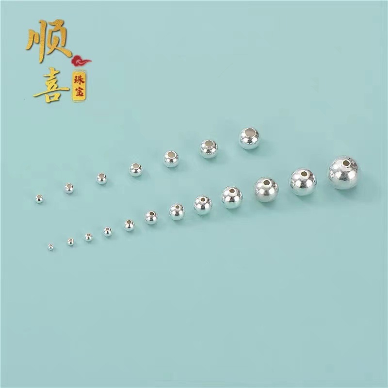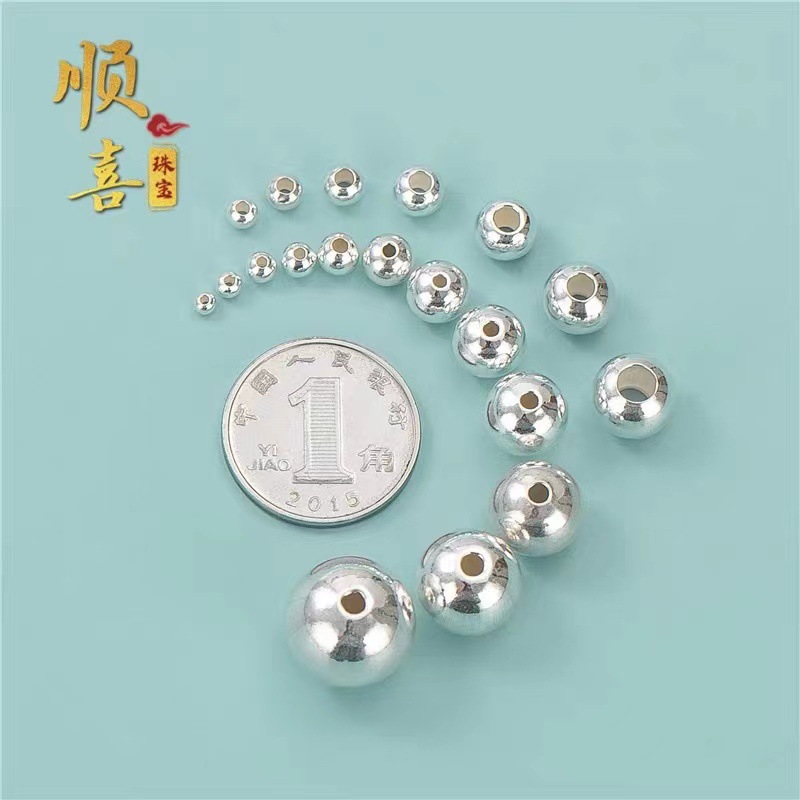 S999纯银大孔珠子散珠光珠手工diy编绳圆珠串珠手链编织配件材料,浙江 杭州