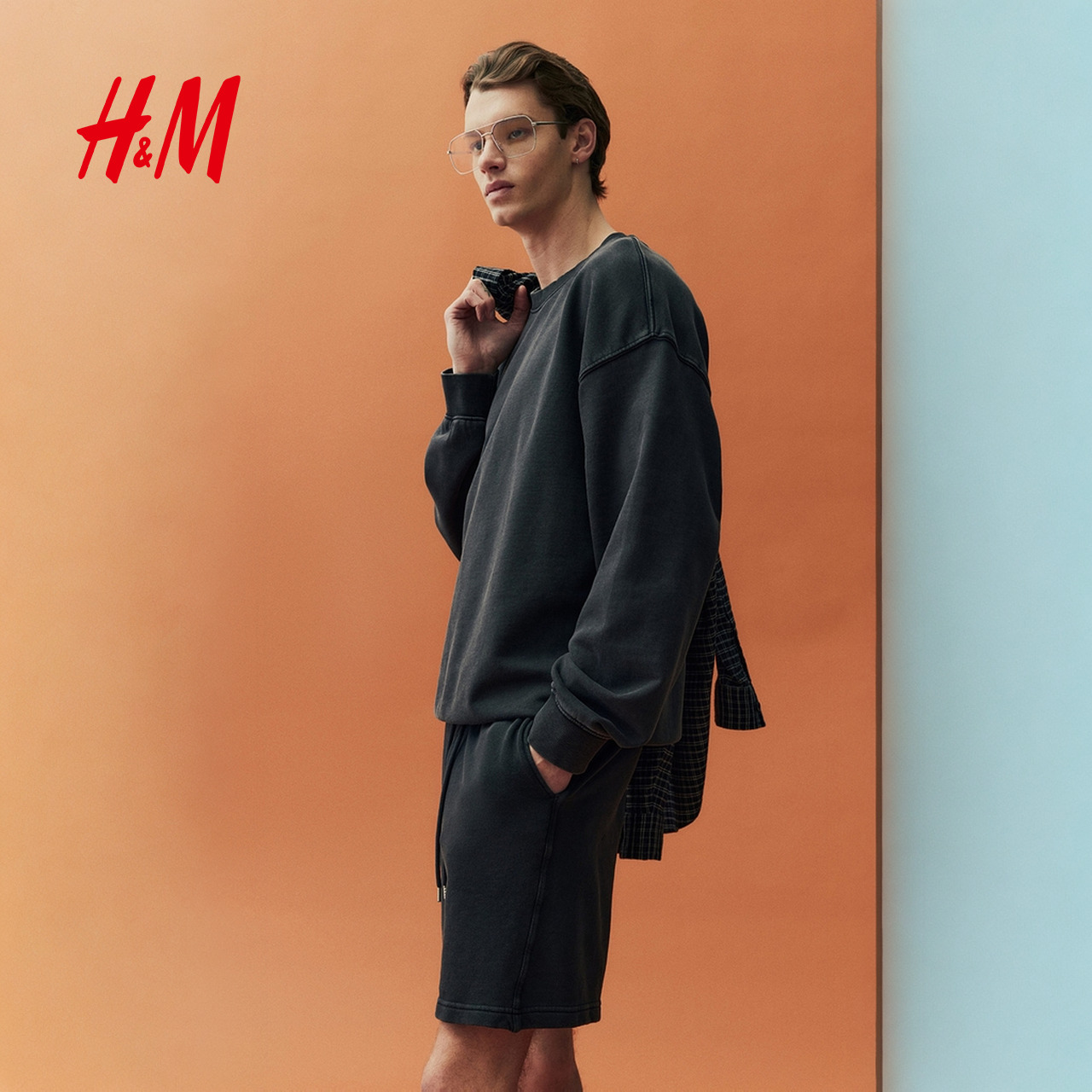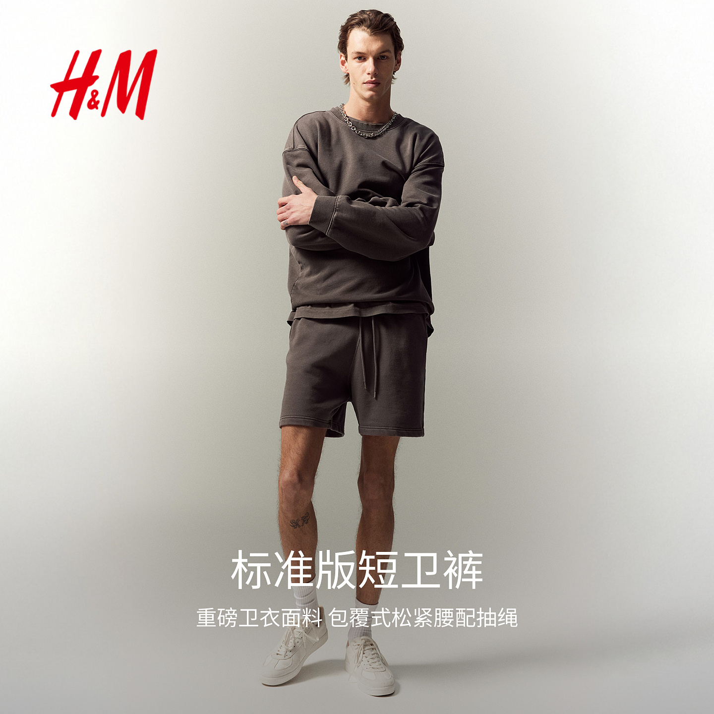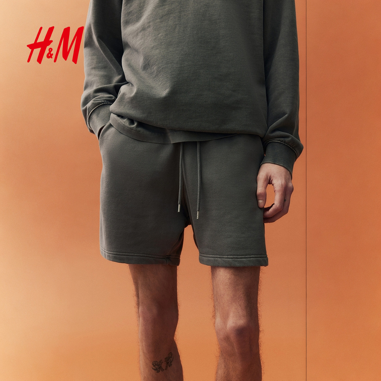 HM男装卫裤2025秋季新款时尚舒适松紧腰重磅休闲抽绳短裤1276001,江苏 苏州