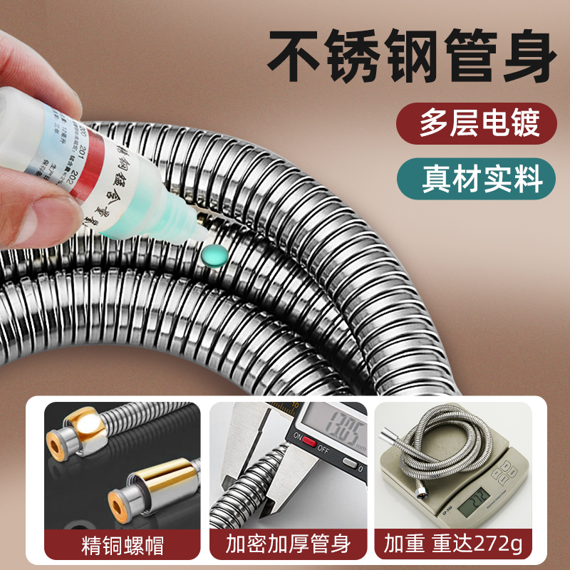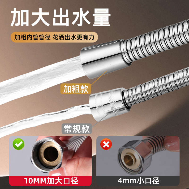 花洒软管大口径不锈钢淋雨水管加粗防爆洗淋浴喷头连接大流量出水,浙江 宁波