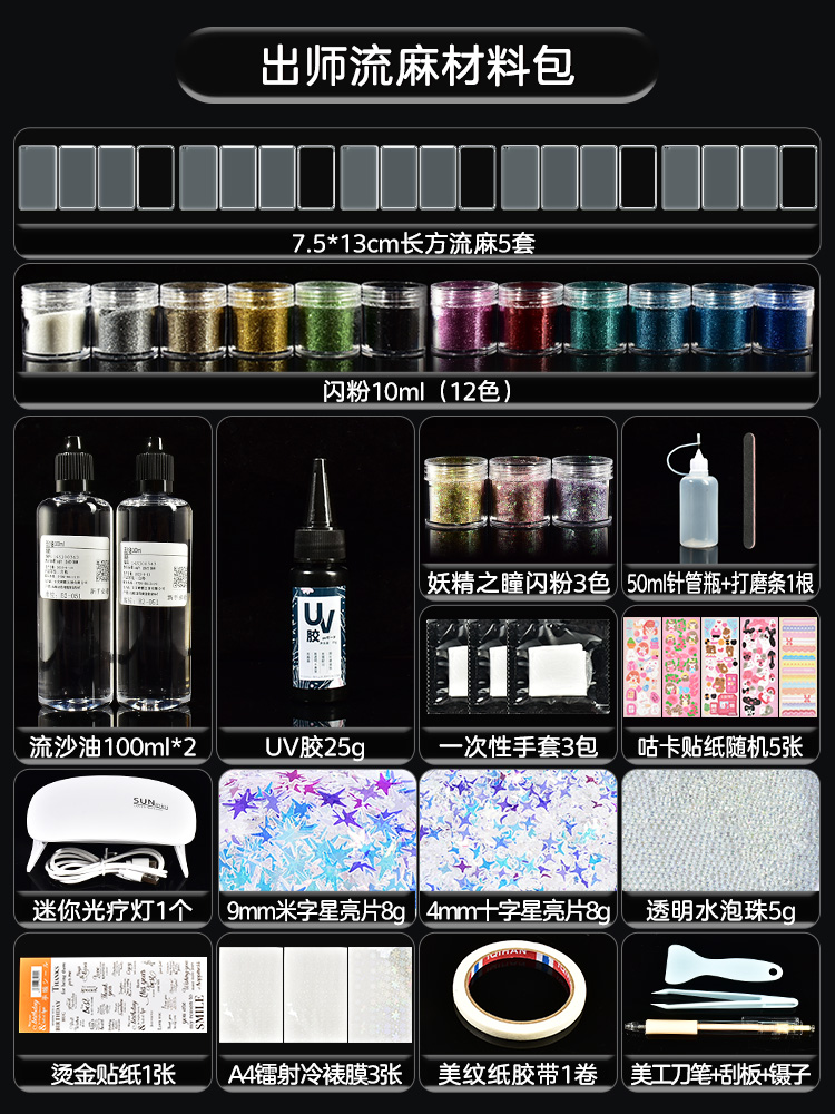 流沙麻将亚克力板流麻diy材料包流沙油立牌壳子模具框砖自制套装