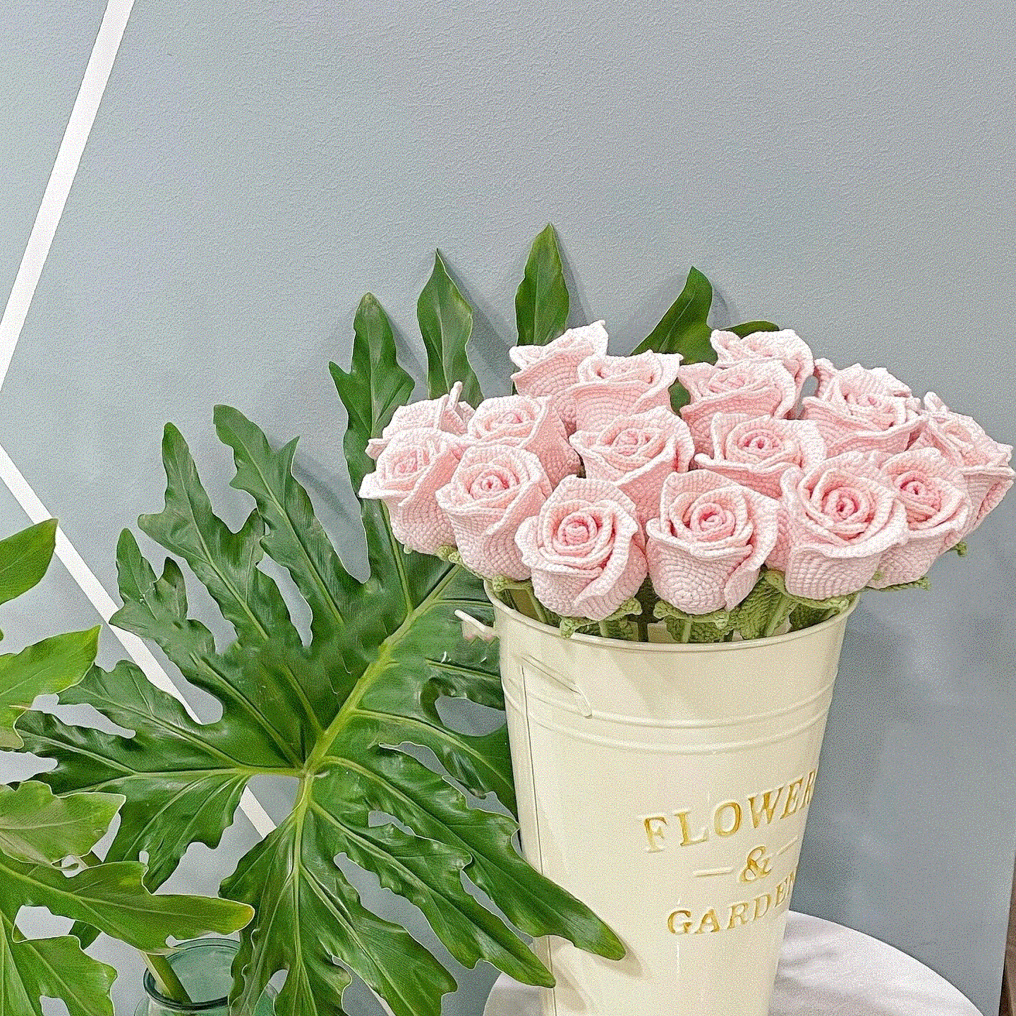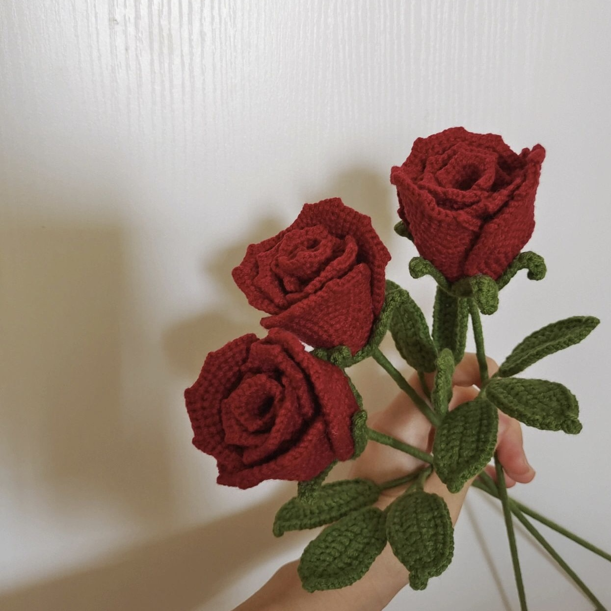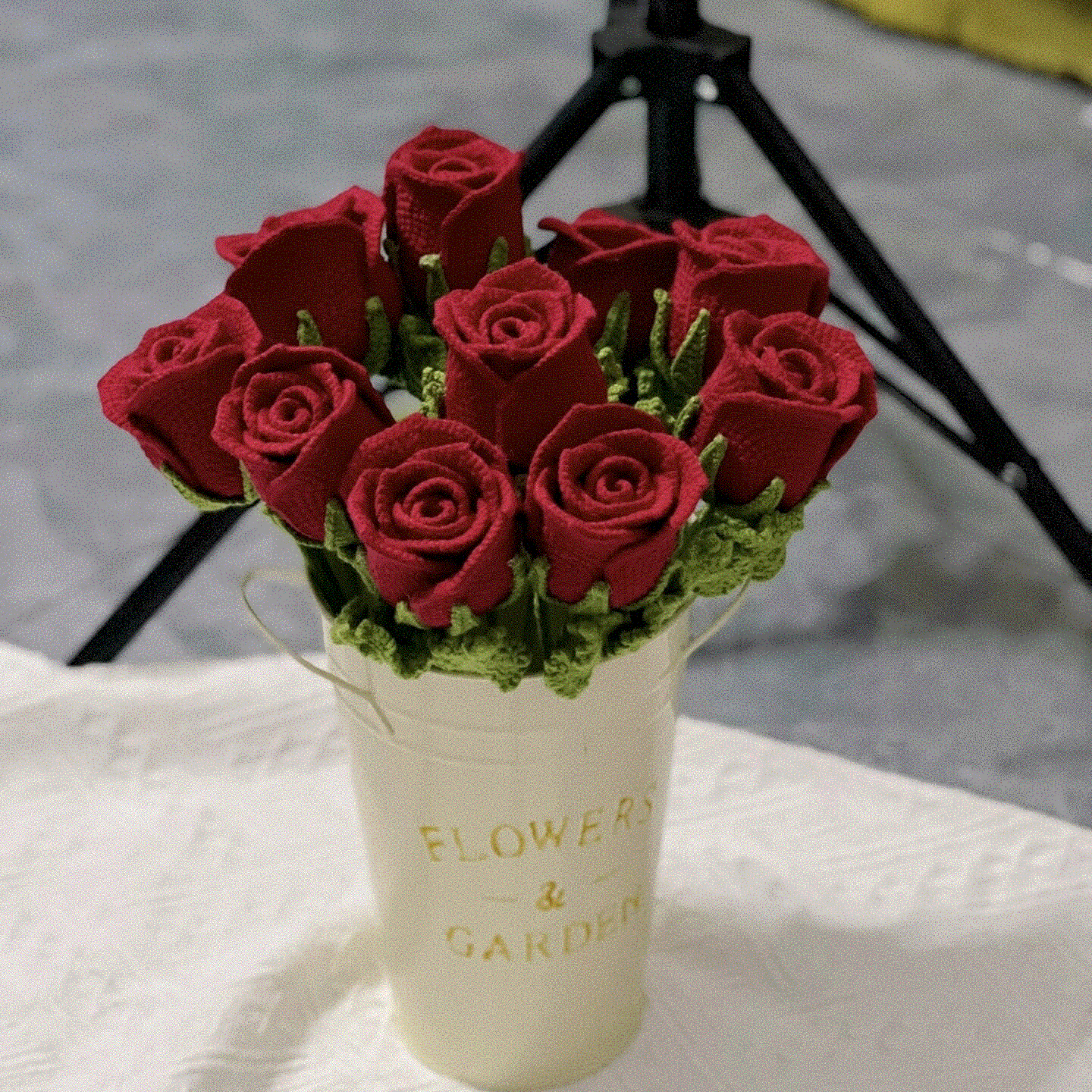 手工编织DIY钩针材料包酒杯玫瑰花束情人节永生花送礼手捧花七夕