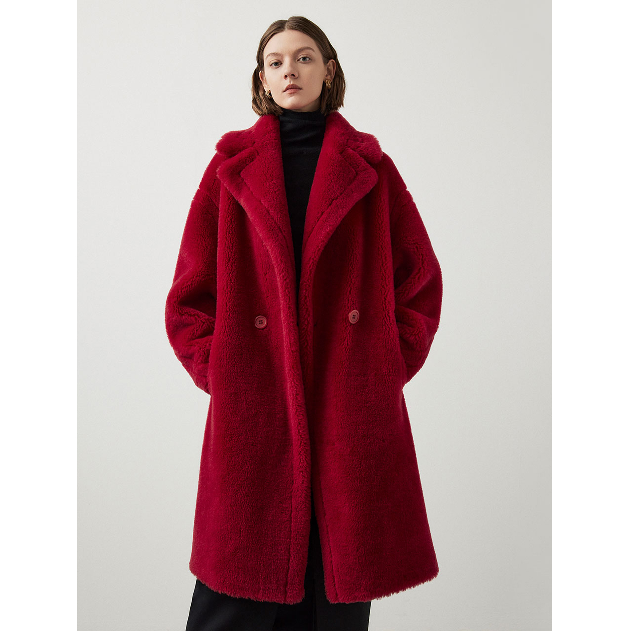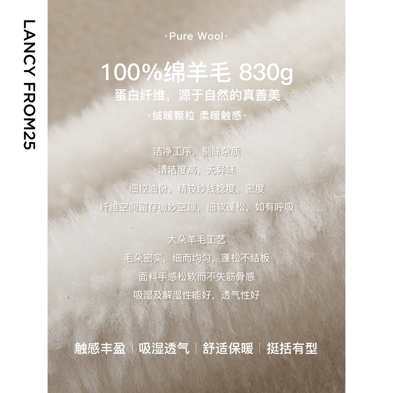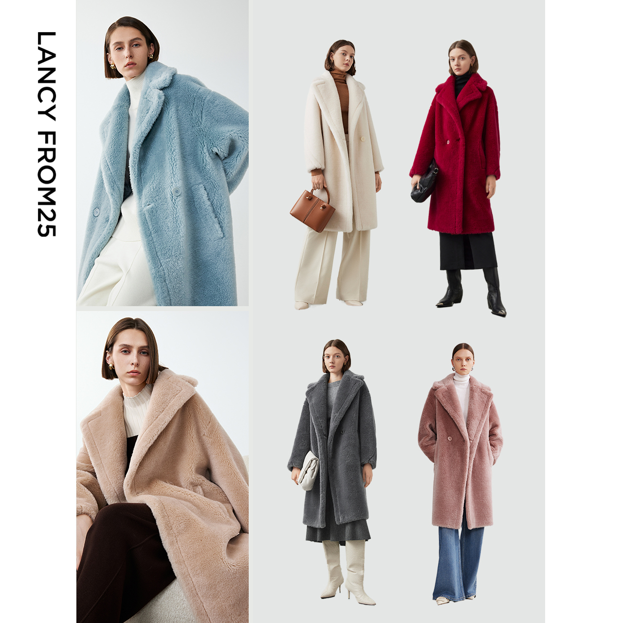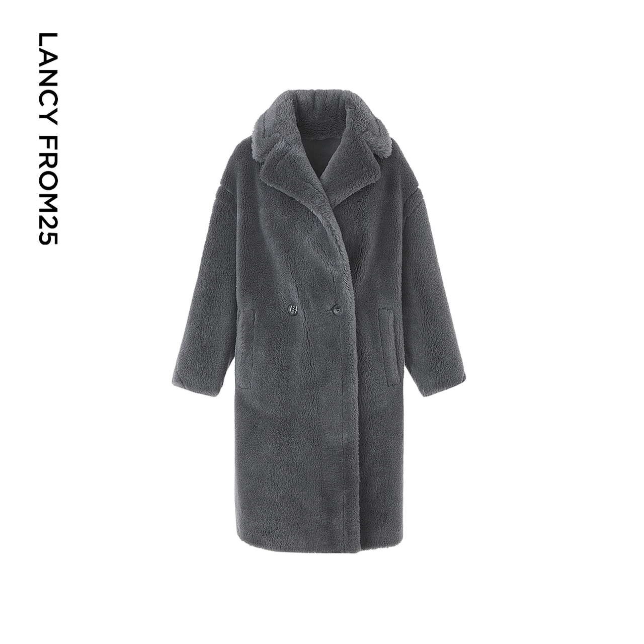 【王楚然同款】朗姿颗粒羊毛大衣西装领仿皮草外套设计感冬季新款