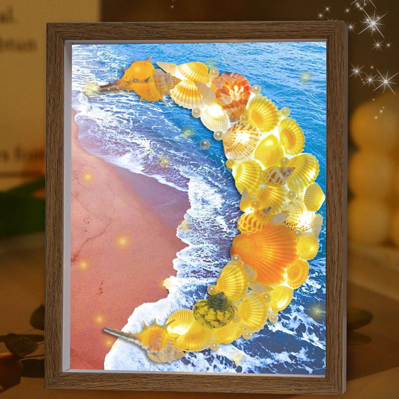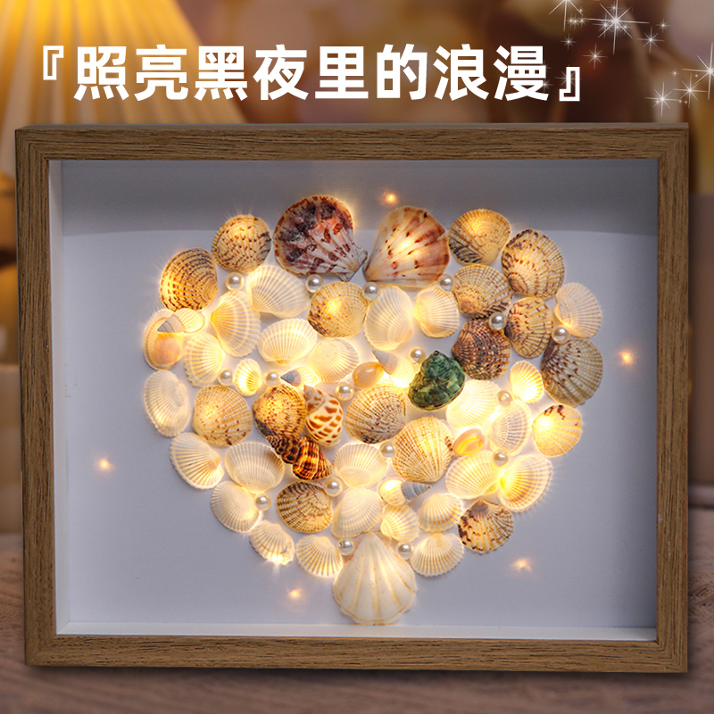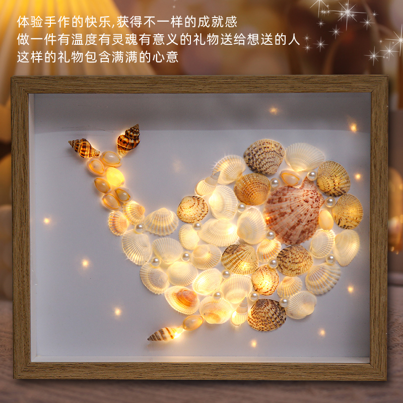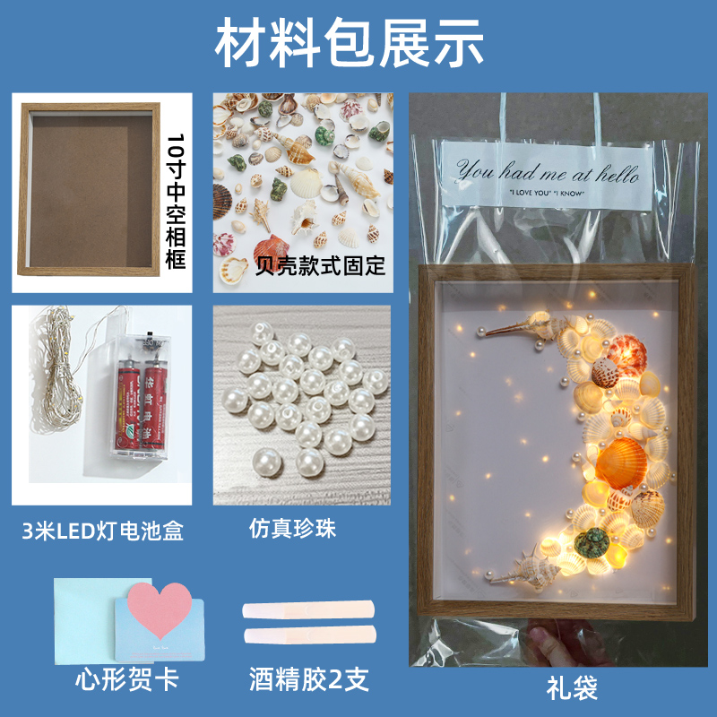 手工diy贝壳小夜灯月亮灯制作材料相框画中秋节沙龙暖场活动礼物