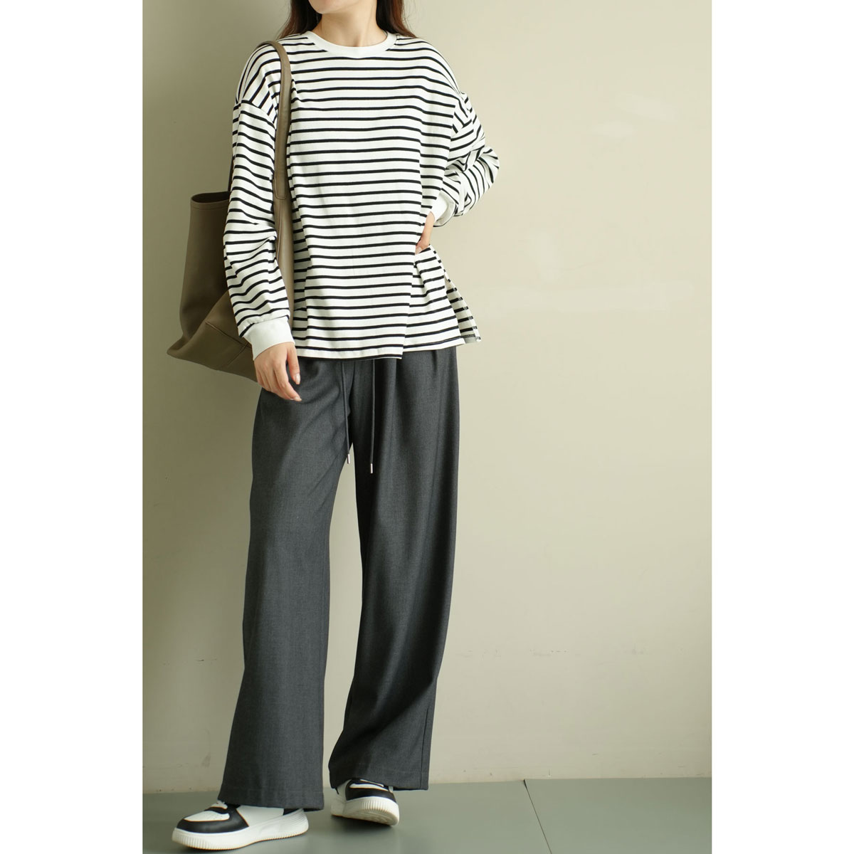 海魂条纹长袖衫 女士纯棉色织圆领T恤 宽松减龄套头衫春款 女装,山东 潍坊