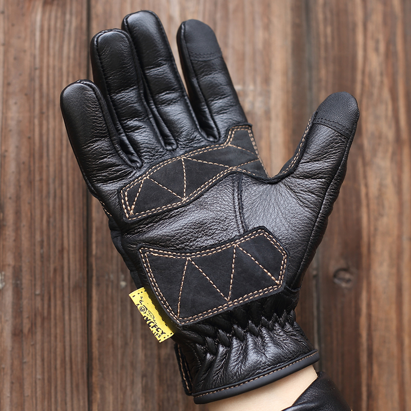 复古摩托车骑行手套男女四季牛皮真皮防摔骑士机车黑棕色装备防风
