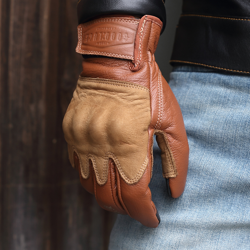 复古摩托车骑行手套男女四季牛皮真皮防摔骑士机车黑棕色装备防风,浙江 嘉兴