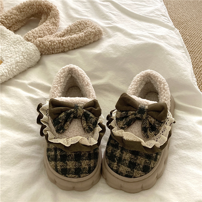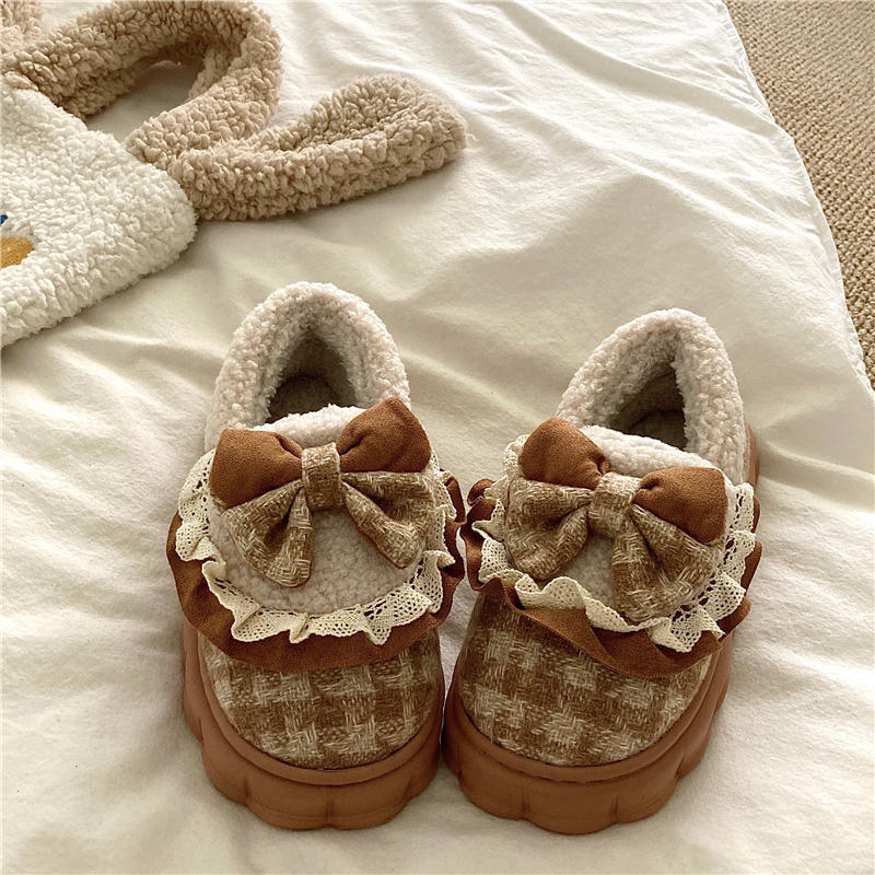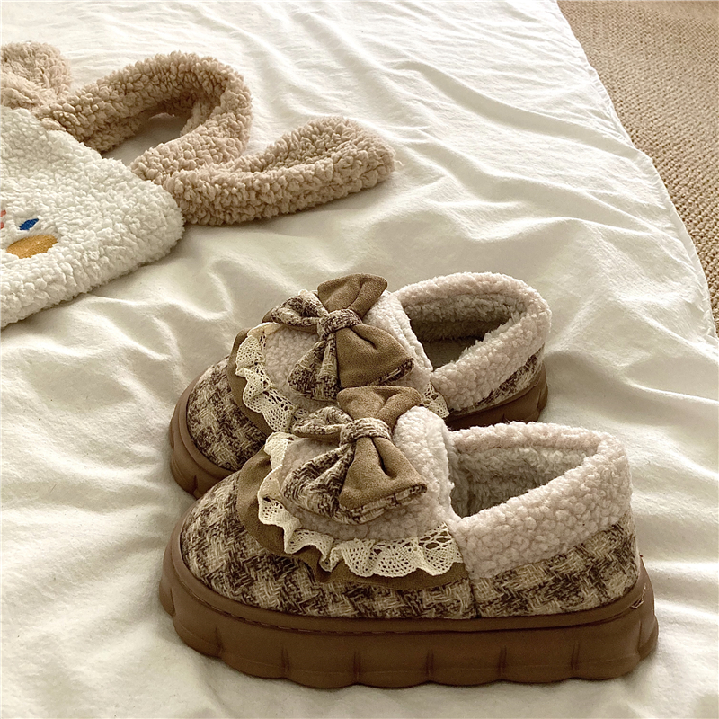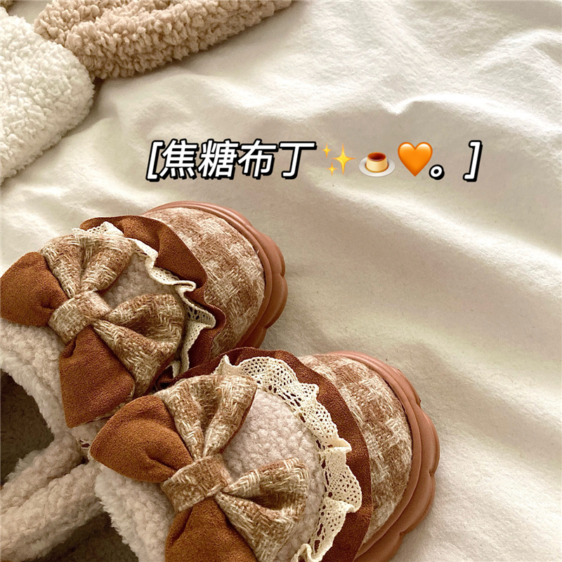 焦糖落日橘~!显白保暖加绒包跟棉鞋女ins冬季厚底居家毛毛棉拖鞋