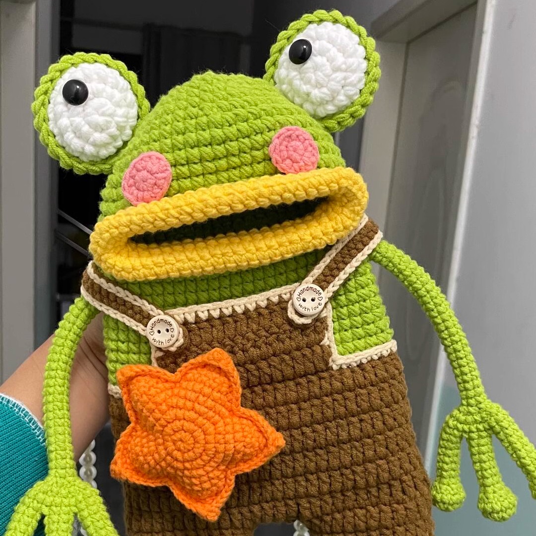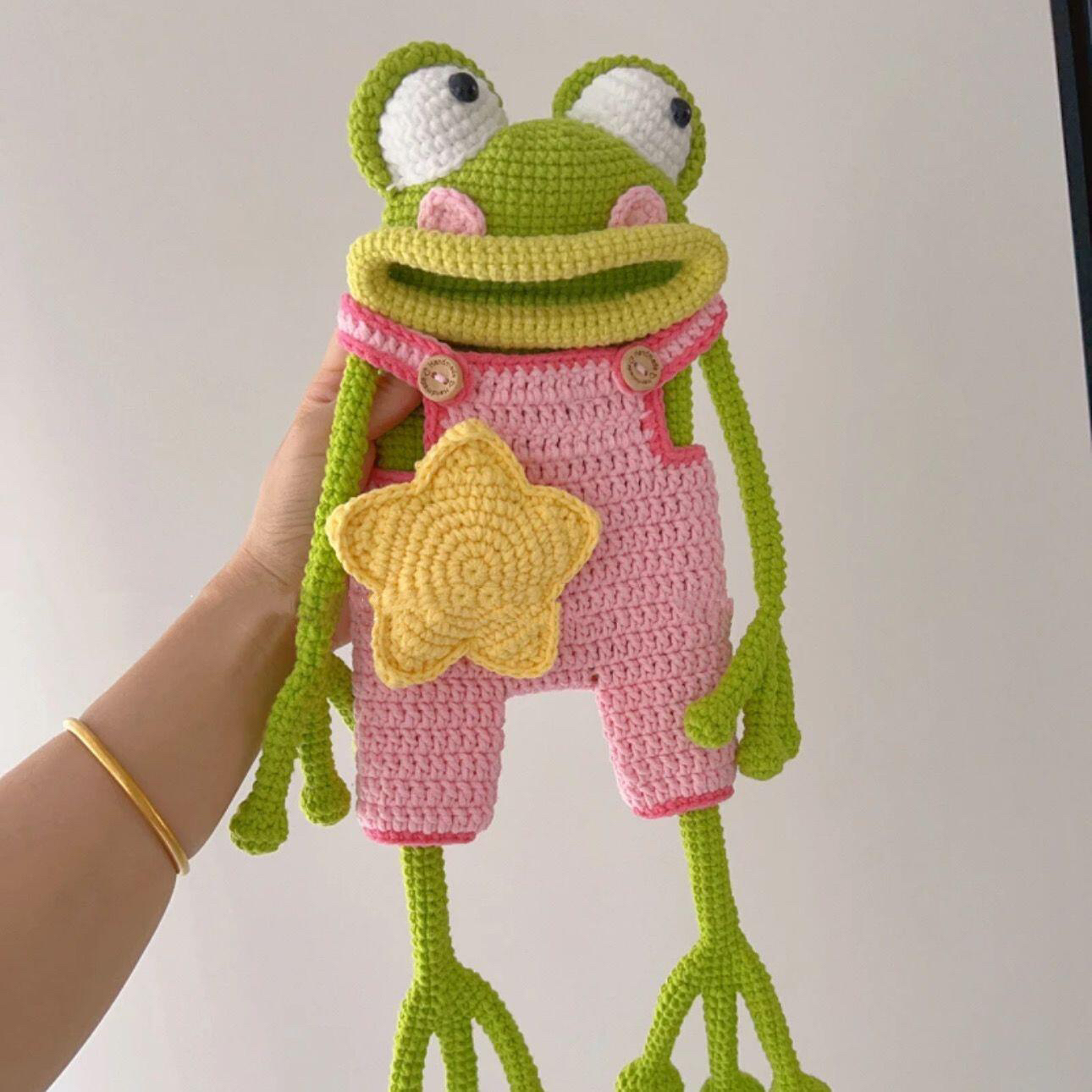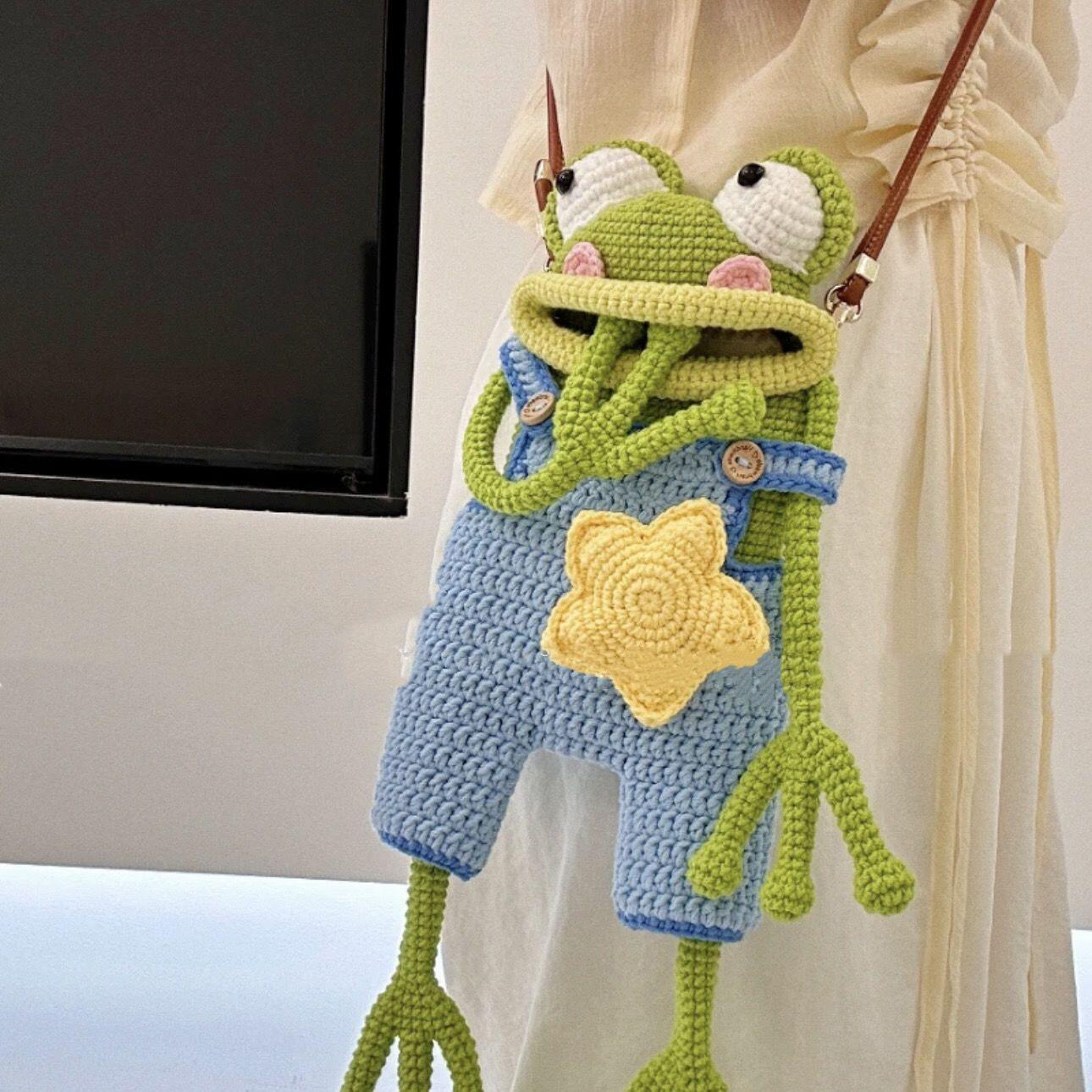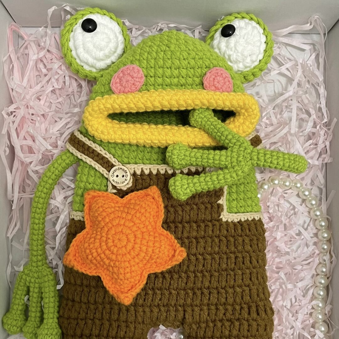 手工钩织DIY材料包大嘴青蛙手机包香肠嘴搞怪丑萌斜挎包自制
