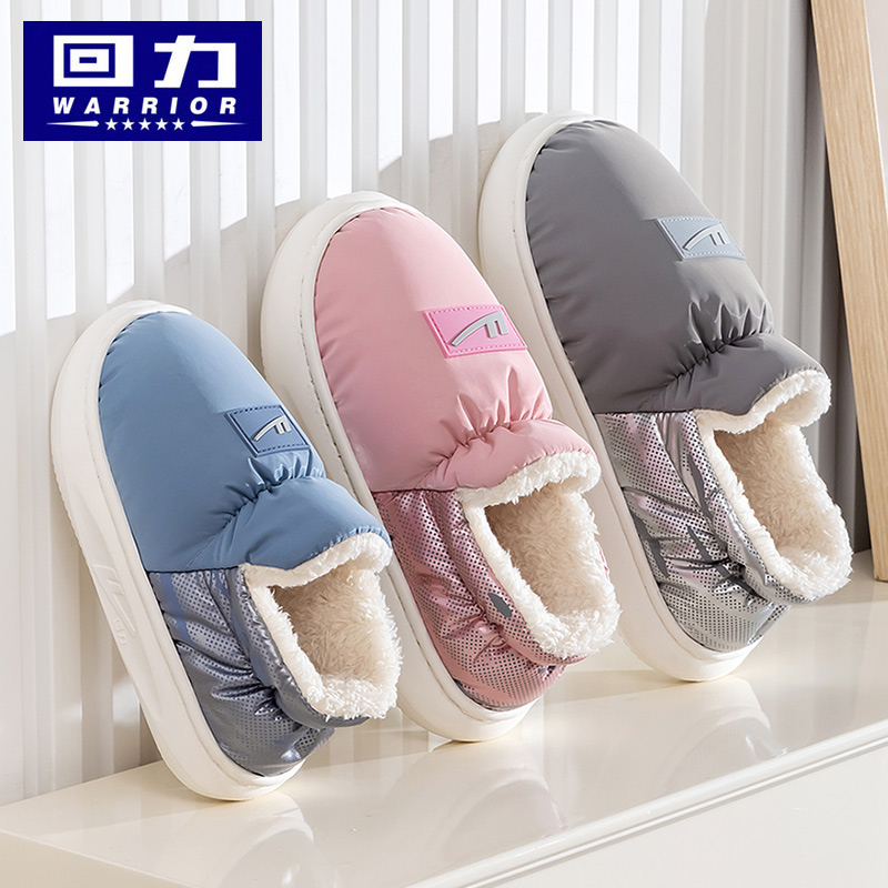 回力亲子棉拖鞋儿童包跟保暖棉鞋男童女童居家室内防水羽绒布防滑
