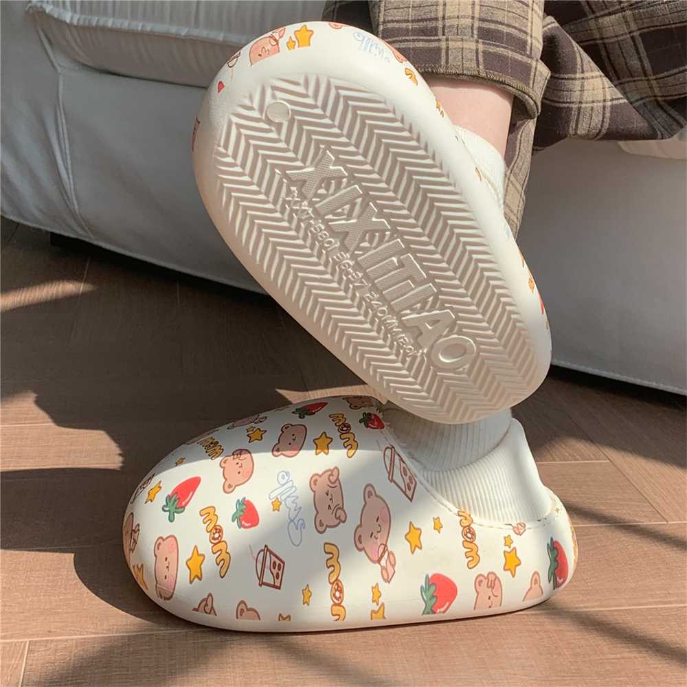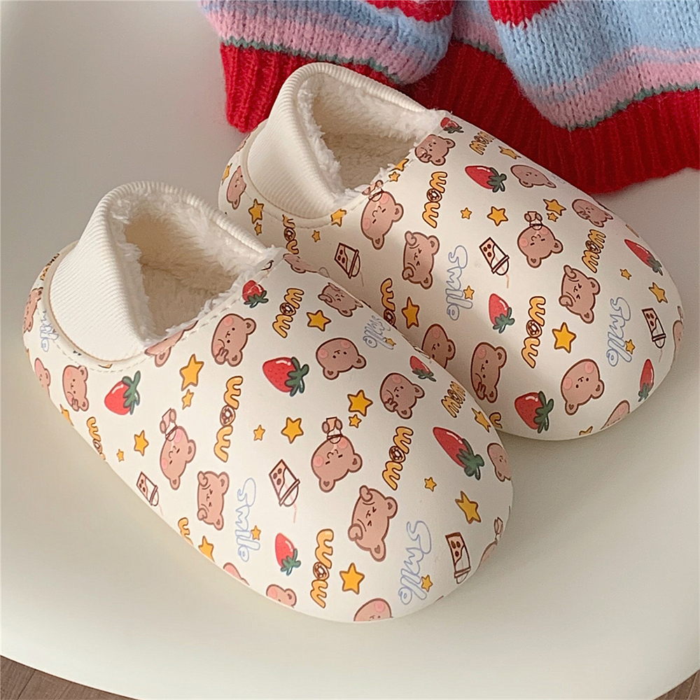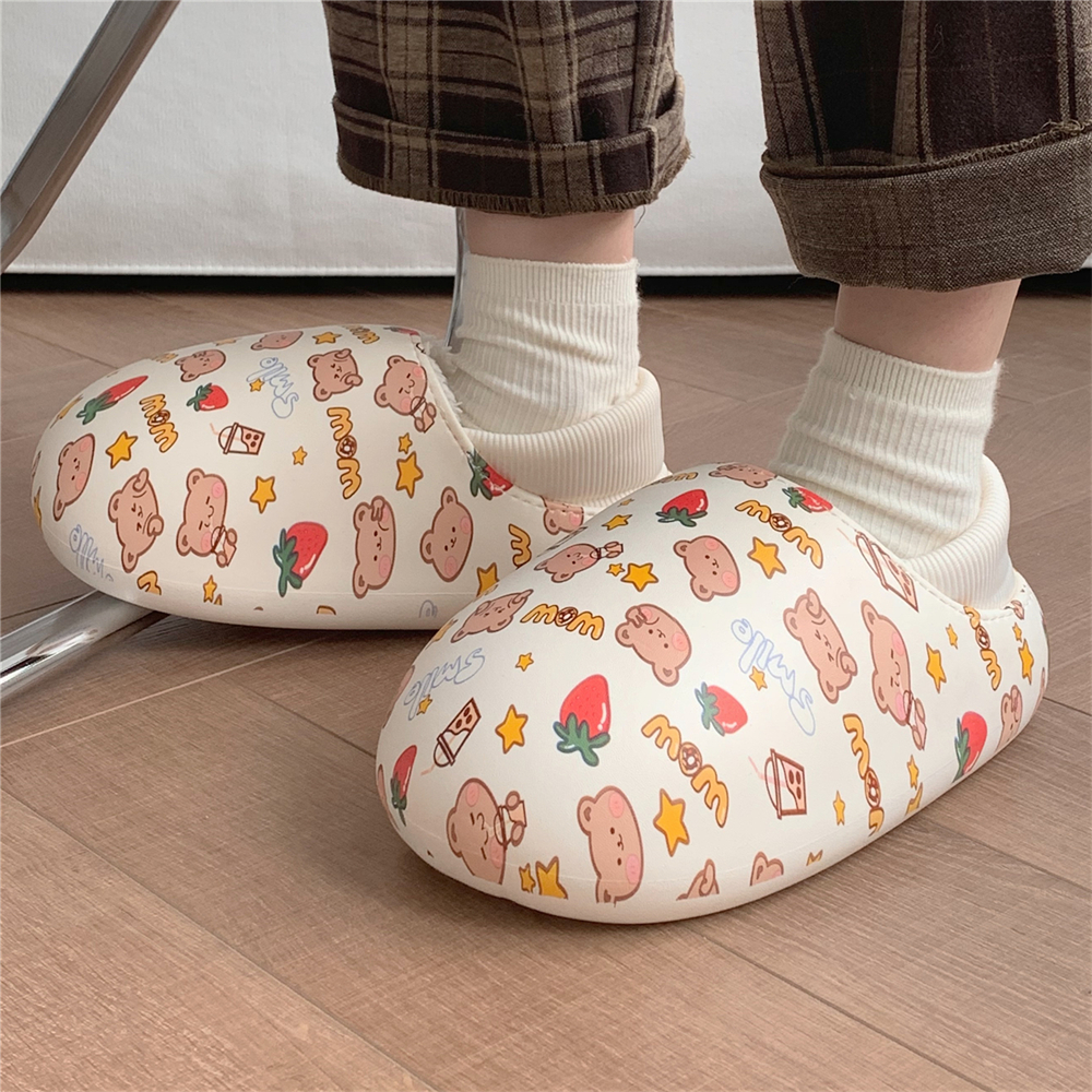 休闲居家防滑防水月子棉鞋女士外穿可爱小熊保暖全包跟棉拖鞋冬季,广东 揭阳