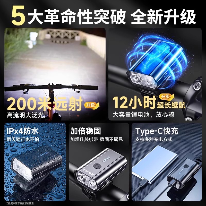 奥克斯山地车自行车夜骑灯前灯尾灯夜间照明骑行装备骑行强光电筒,浙江 宁波