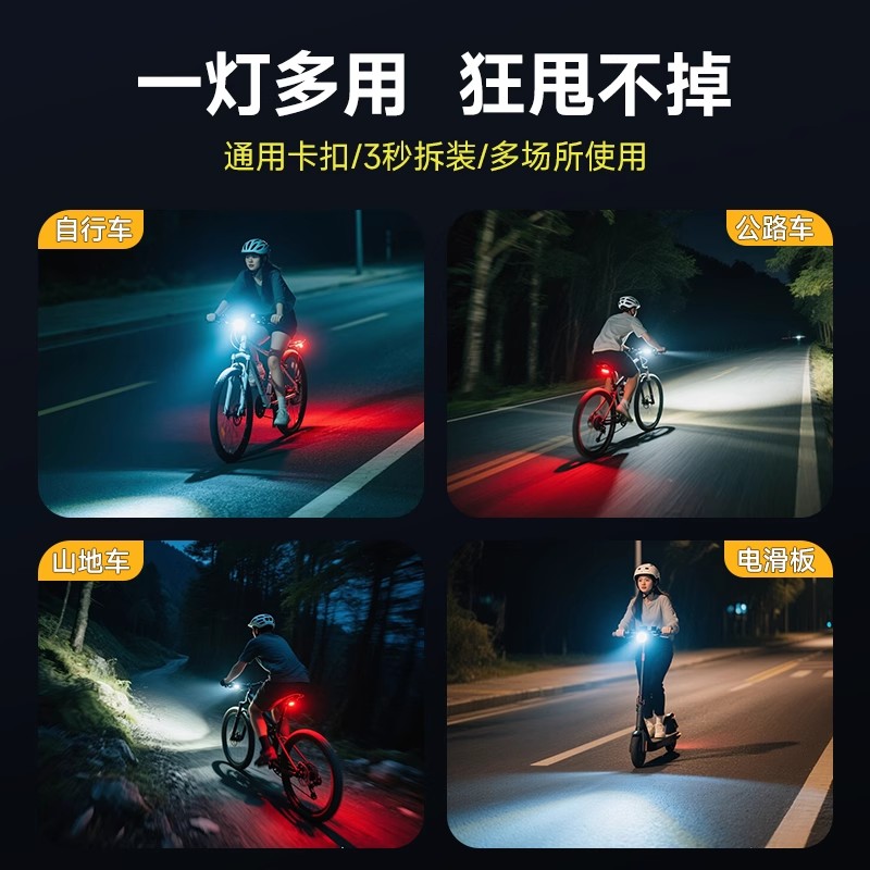 奥克斯山地车自行车夜骑灯前灯尾灯夜间照明骑行装备骑行强光电筒