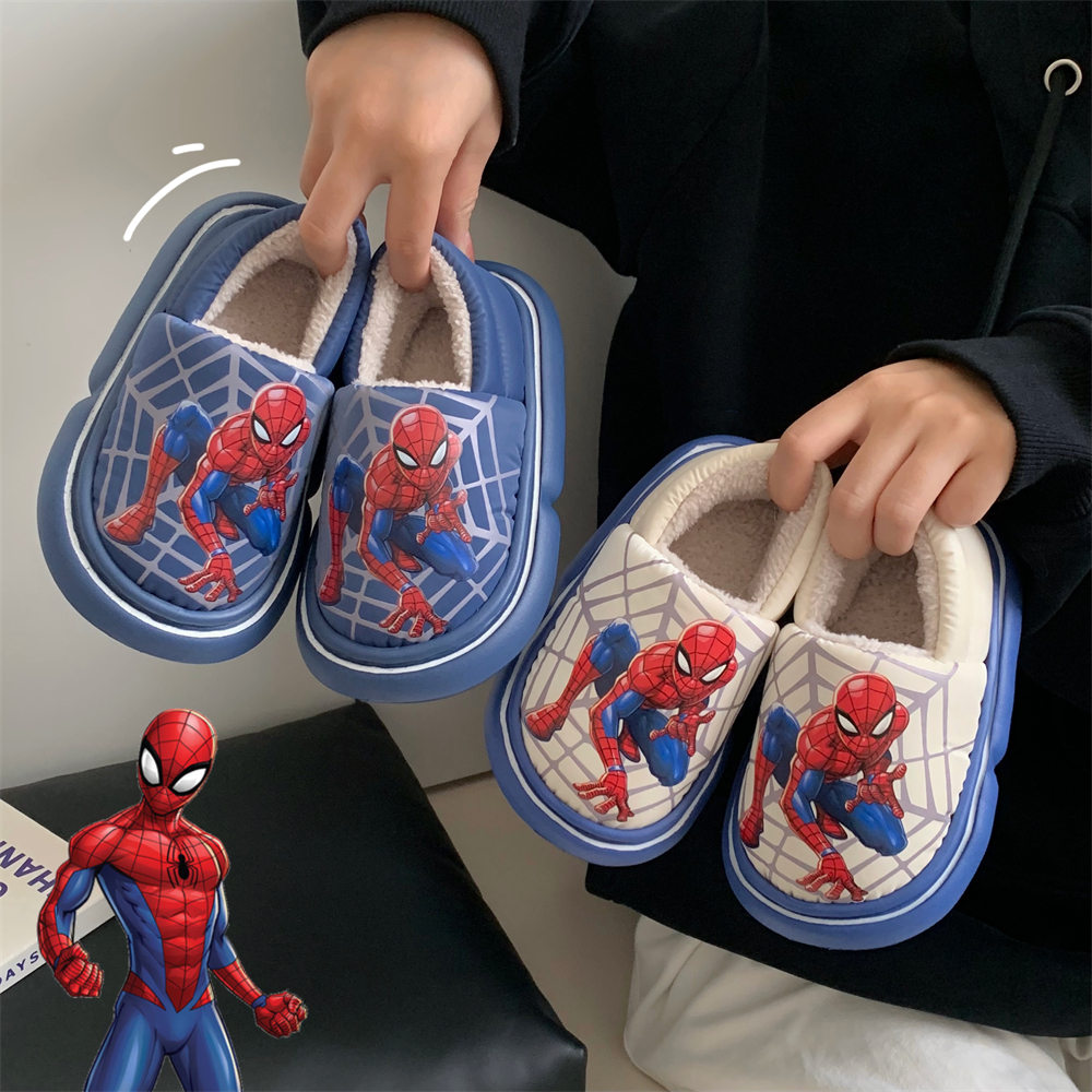 男童新款ins蜘蛛侠中小大童居家棉鞋冬季保暖加绒防水防滑棉拖鞋