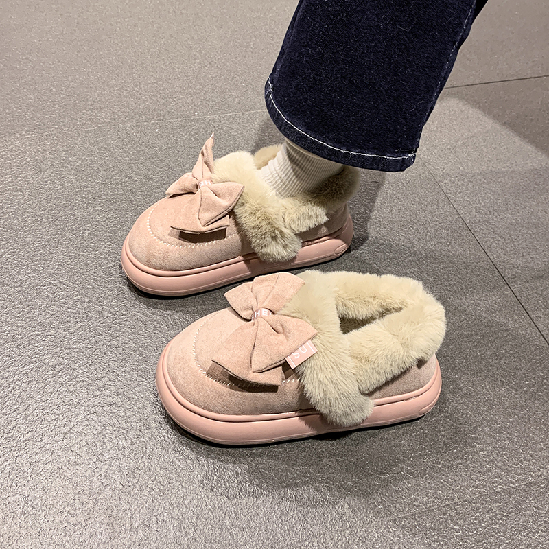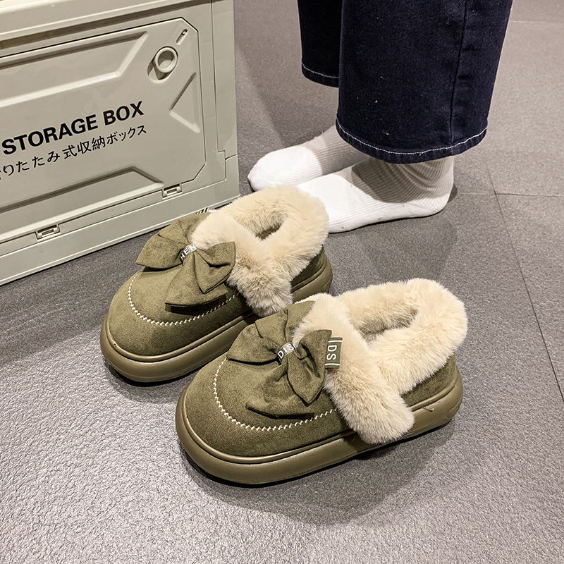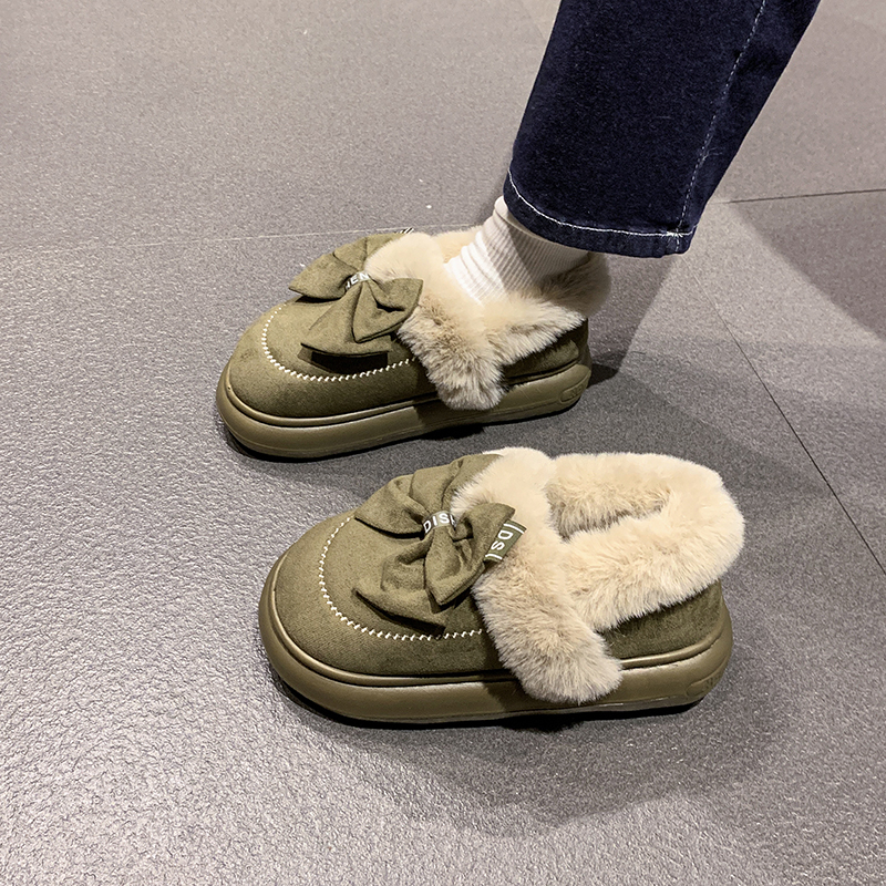包跟棉鞋女士冬季外穿可爱蝴蝶结加绒保暖室内居家厚底防滑棉拖鞋,浙江 宁波