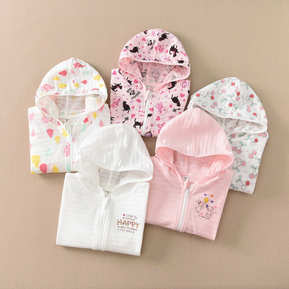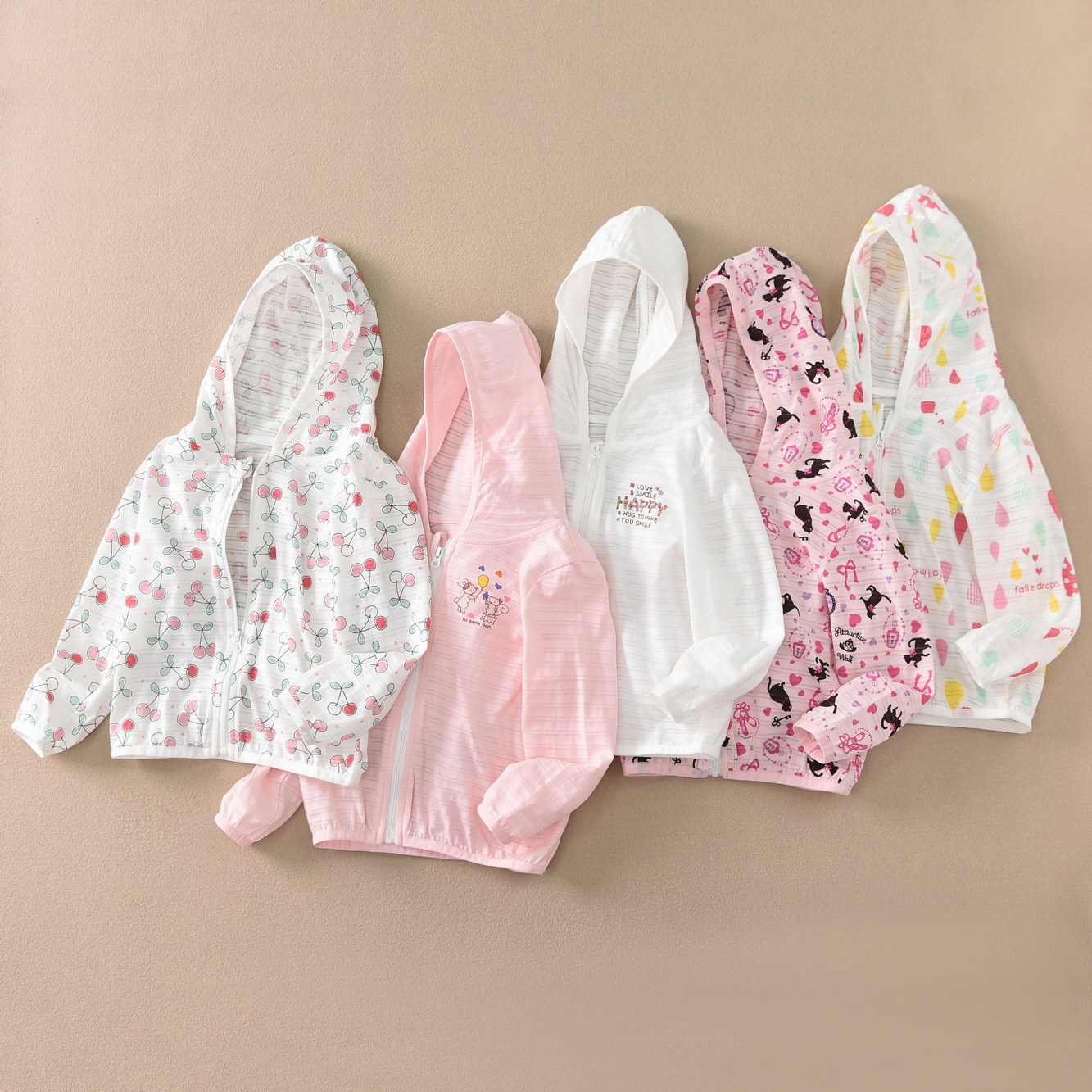 夏季新款纯棉出口薄款透气防晒吸汗皮肤衣中大童儿童开衫连帽外套,山东 潍坊