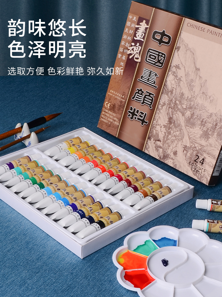 国画颜料水墨画12色18色24色初学者入门小学生工具套装工笔画材料,上海