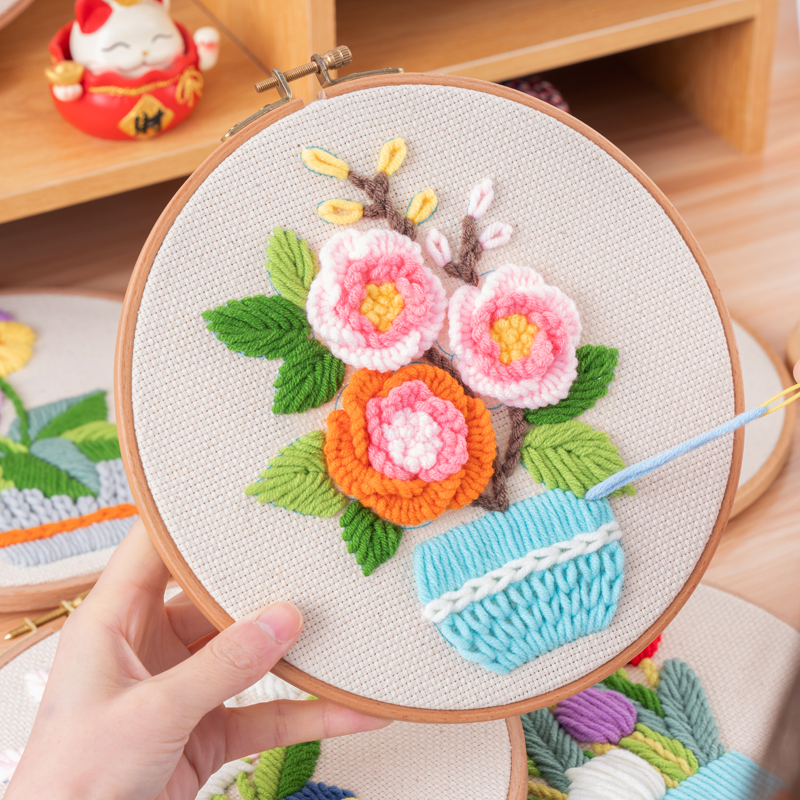 DIY刺绣材料包毛线绣绣花立体新手结婚礼物手捧花卉手工自绣布艺,浙江 金华