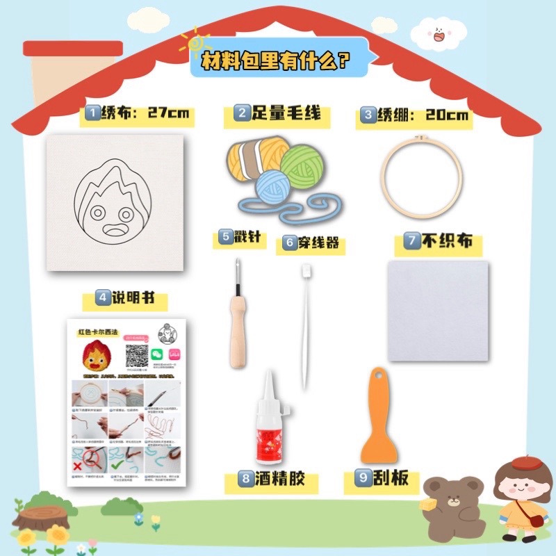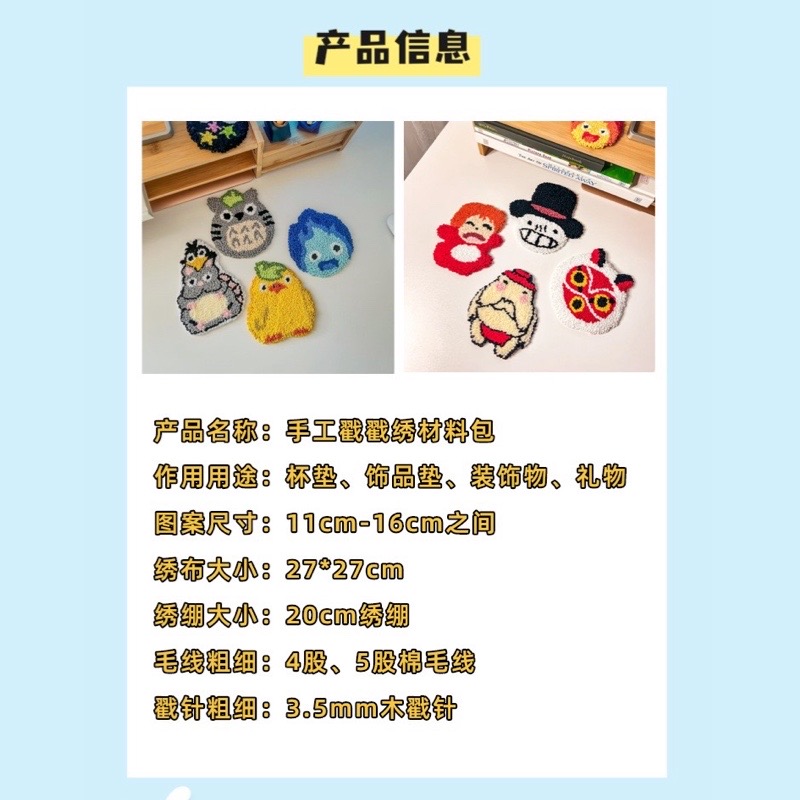 戳戳绣手工diy材料包卡通杯垫挂件礼物周边文创戳戳乐解压刺绣